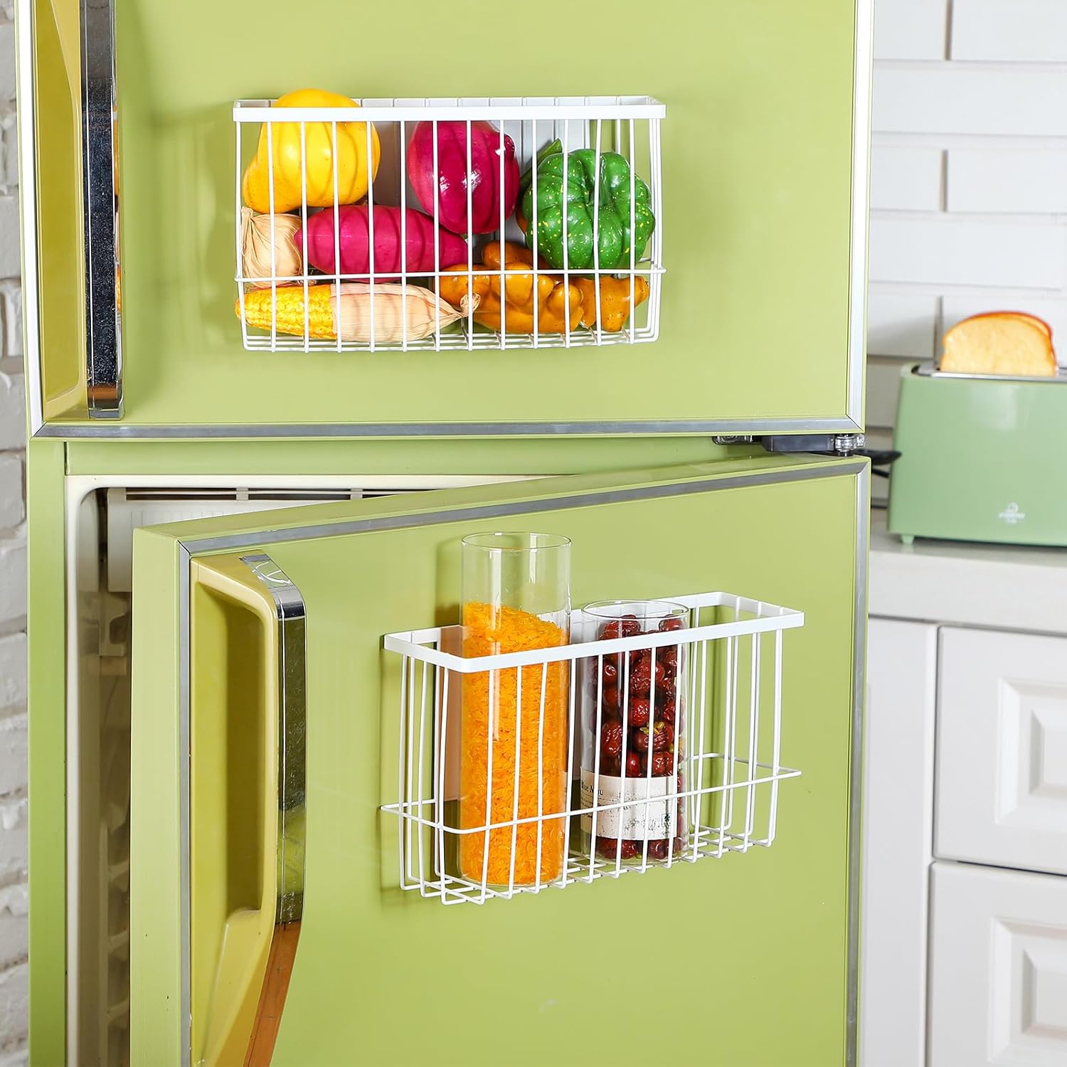 3 Pcs Magnetic or Adhesive Refrigerator Organizer Magnetic Baskets Kitchen Holder for Refrigerator Metal Shelf Rack Storage with 2 Types of Installation(White)
