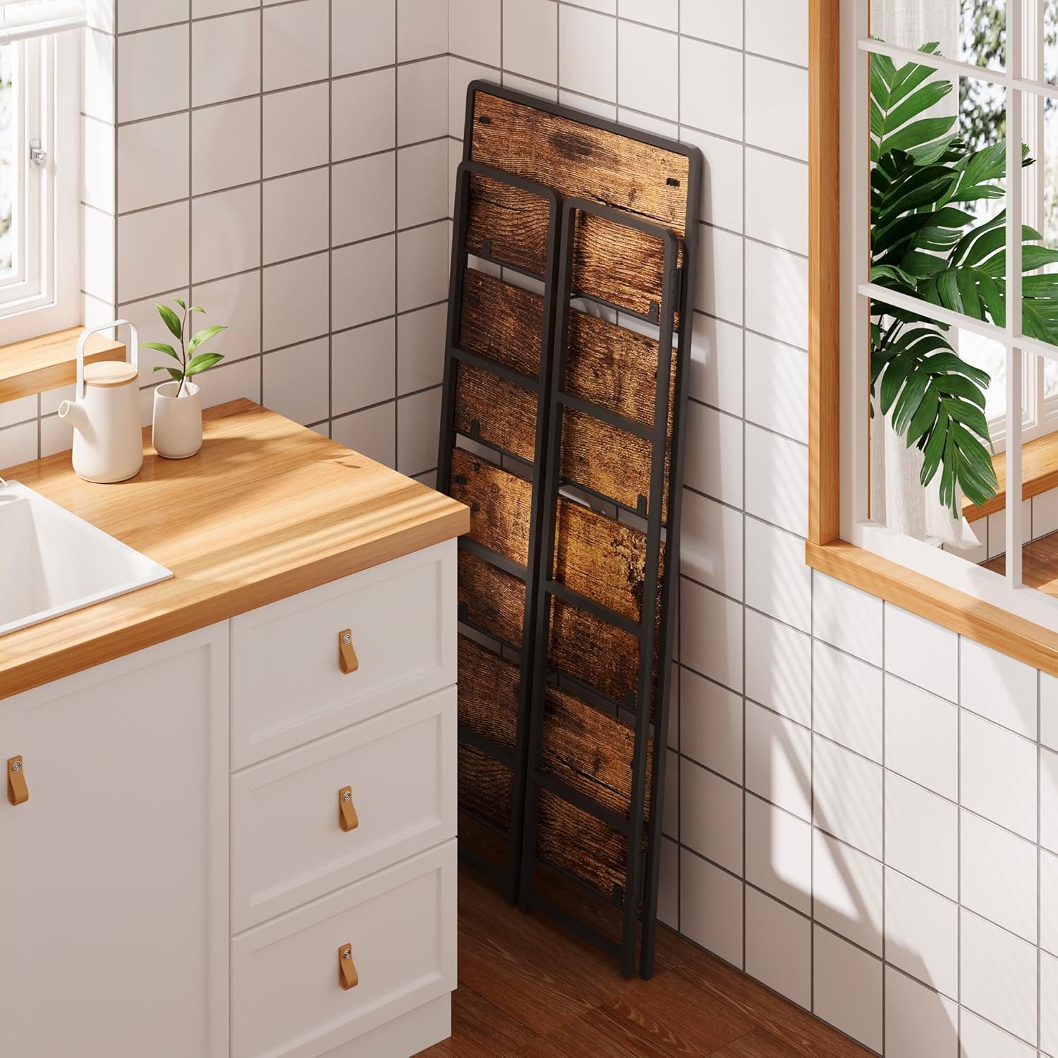 - 【Simplicity and practical folding bookshelf】it is a industrial style design with simplicity and retro, which can not only make your room in good order, but also occupy few space. You can put it in any space of your home, such as living room, bedroom, corridor, kitchen, balcony, etc