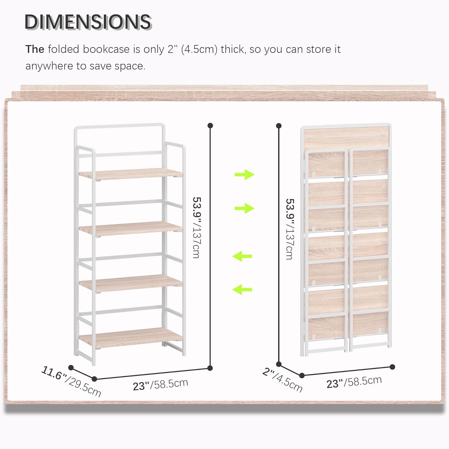 - 【Storage shelf folding sized】23x2x53.9 inches (58.5x4.5x137cm).