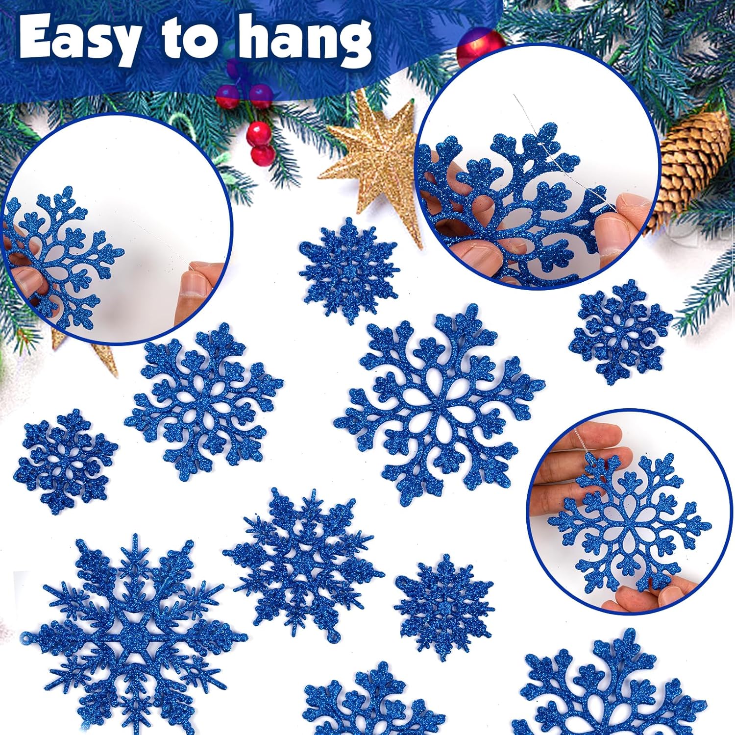 - CHRISTMAS TREE SNOWFLAKES: Featuring sparkly glitters on the surface, these navy blue snowflakes tree ornaments add much more sparkle to your Christmas tree decorations, various sizes give a nicer variety on the tree, just let it snow.