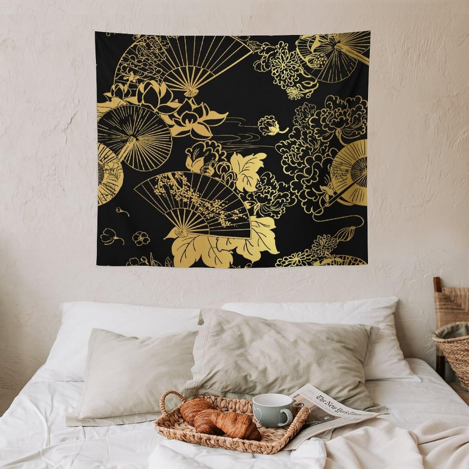 HZOHNAGO Japanese Tapestry Gold Flowers Umbrella Fan Pattern Printed Wall Tapestry Painting Wall Hanging for Bedroom Living Room Dorm 60" W x 50" H