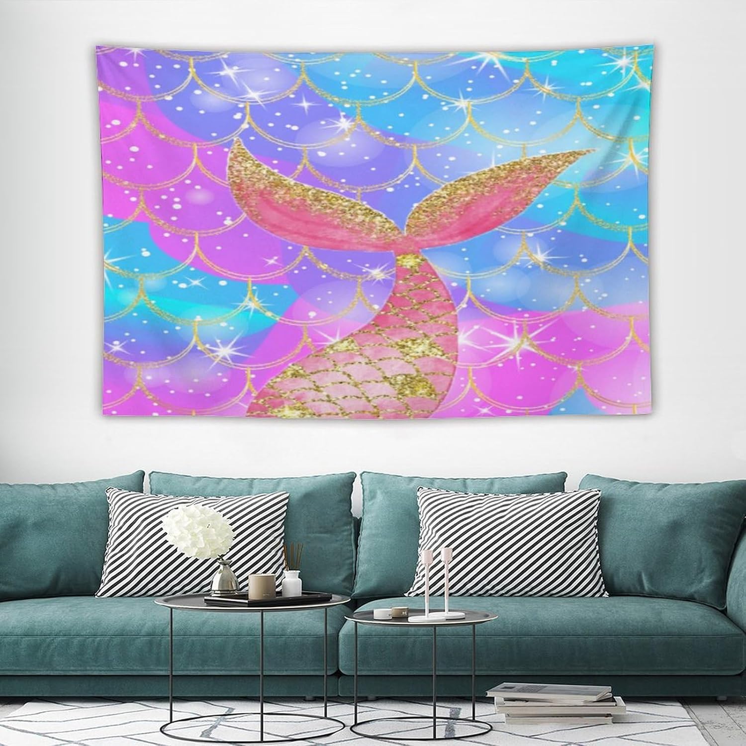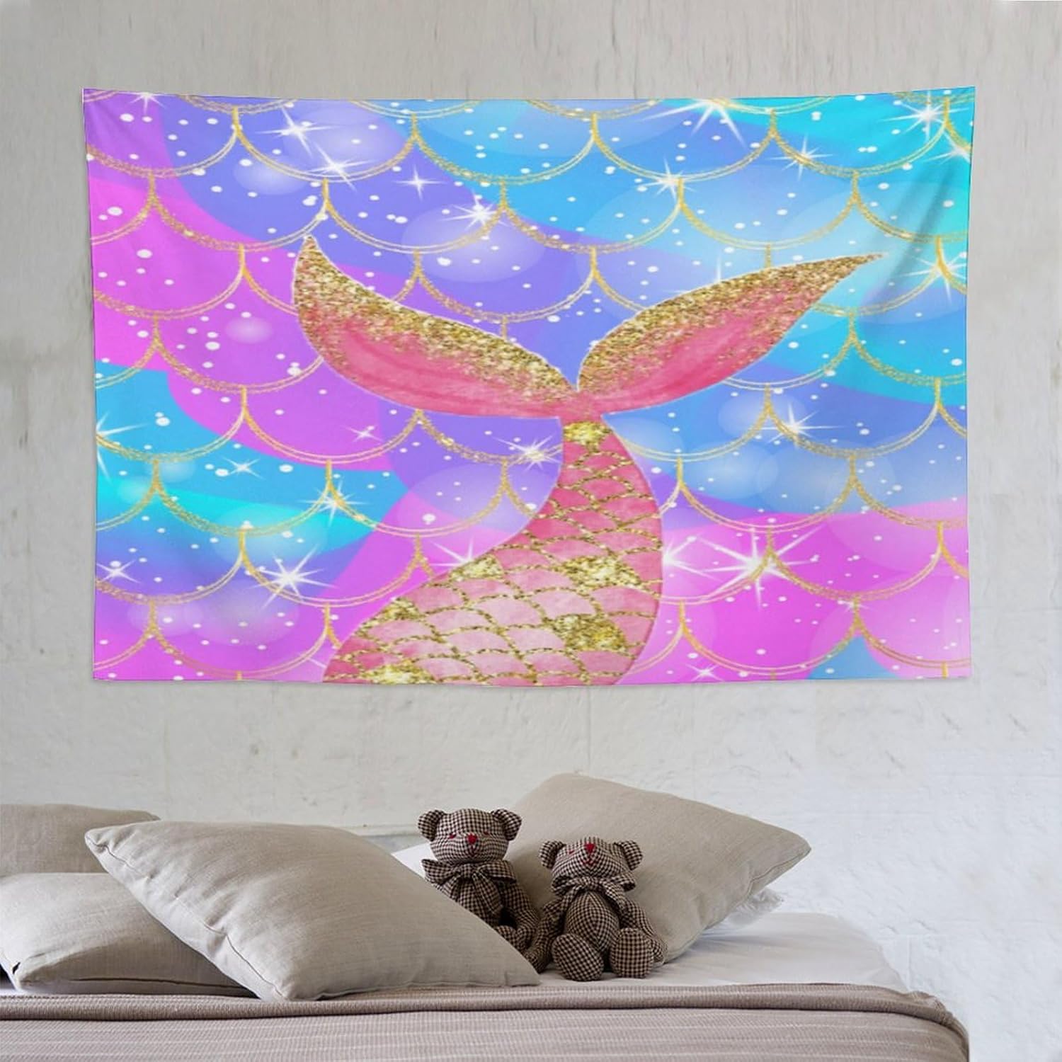 HZOHNAGO Mermaid Scales Tapestry Colorful Shiny Scales Mermaid Tail Pattern Printed Wall Tapestry Wall Hanging for Bedroom Living Room Dorm 90" W x 60" H
