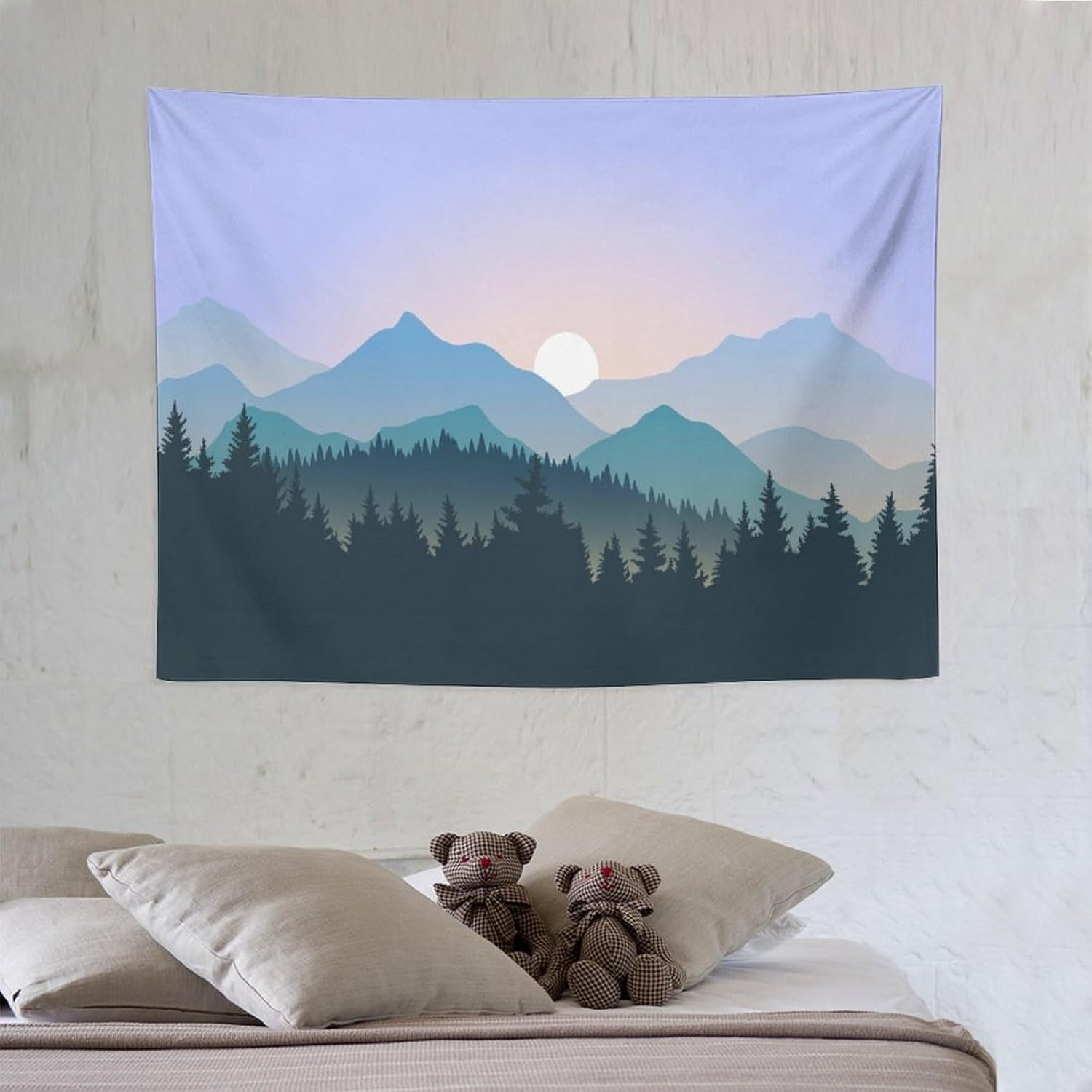 HZOHNAGO Mountain Tapestry Forest Mountain Sunrise Pattern Printed Wall Tapestry Wall Hanging for Bedroom Living Room Dorm 40" W x 30" H