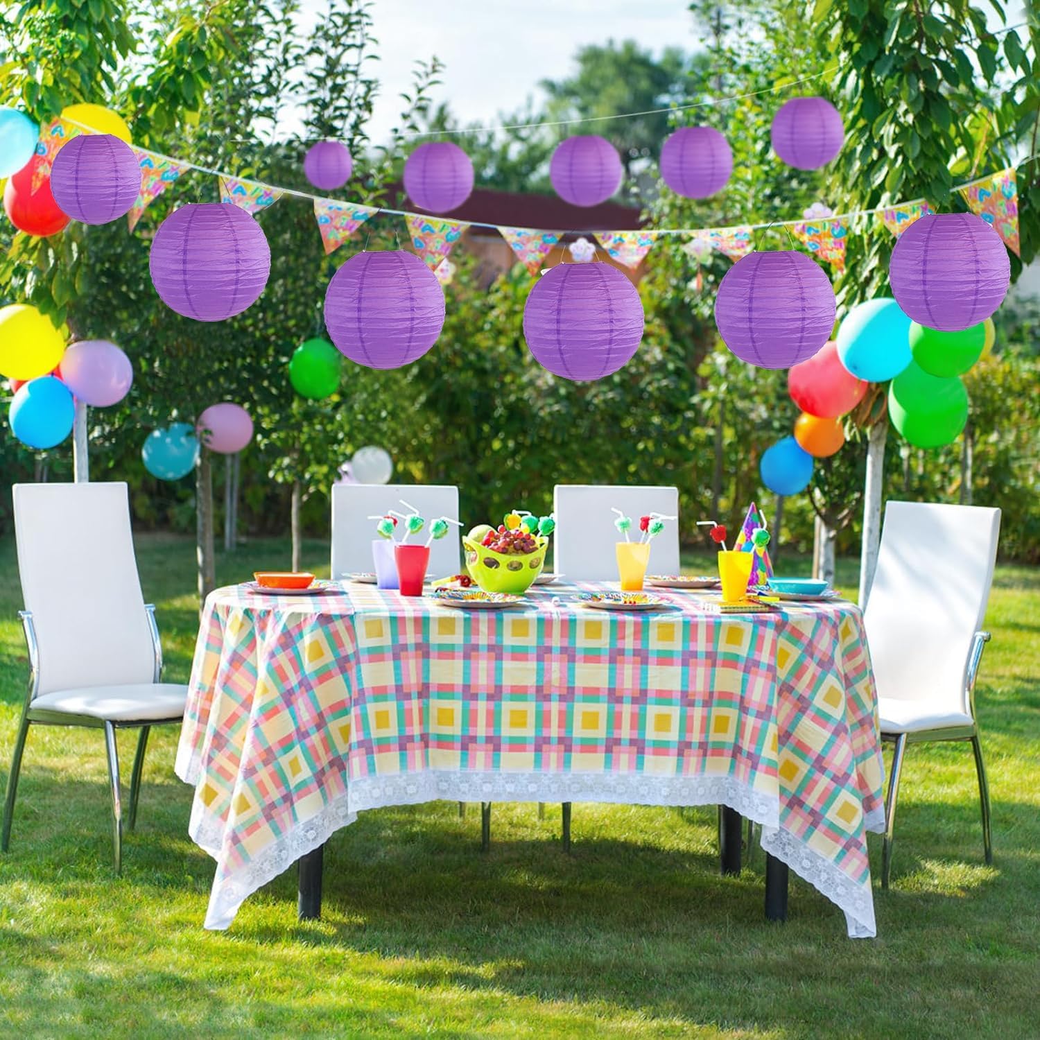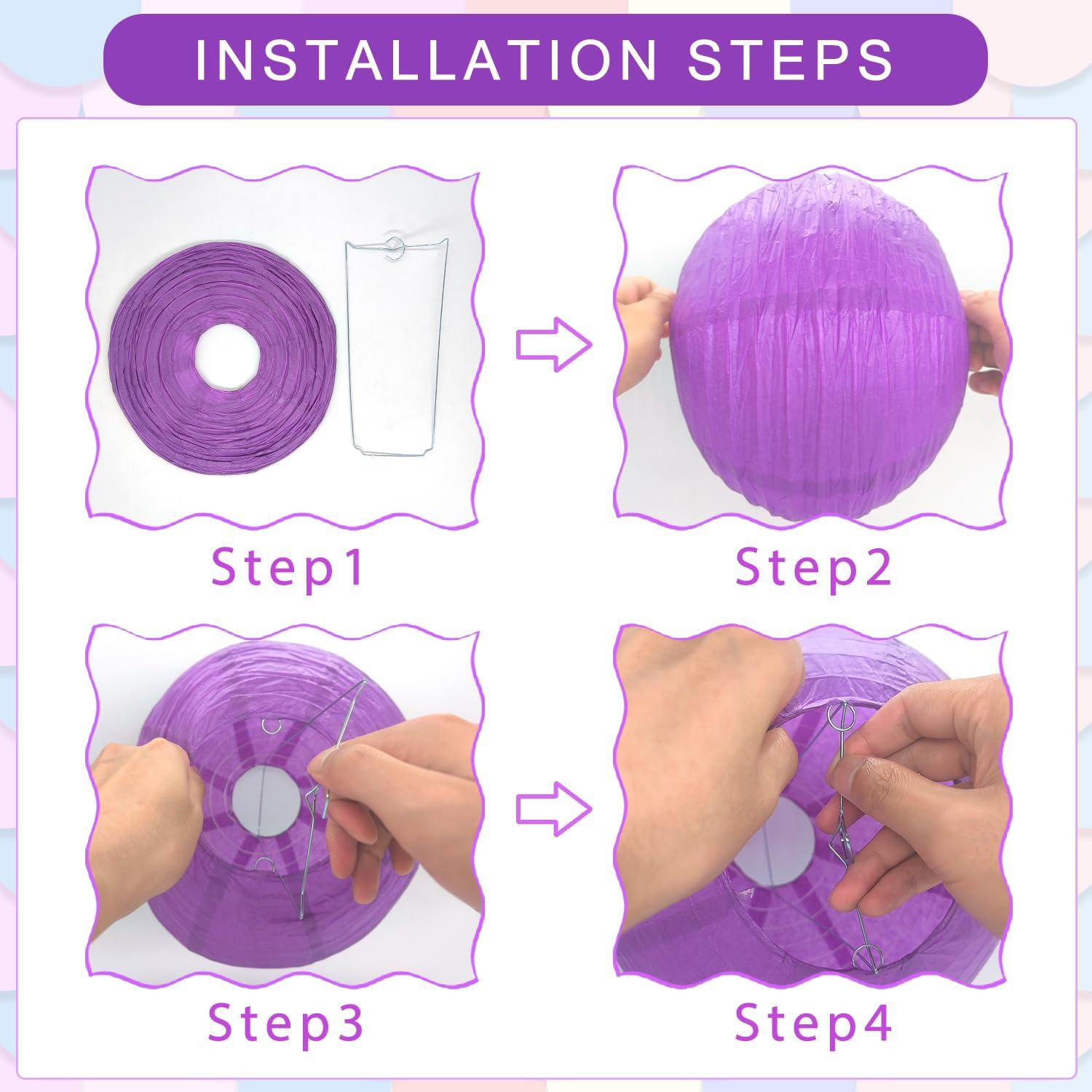 12Pcs Round Paper Lanterns Assorted Sizes (6" 8" 10" 12") for Home Decor, Restaurant, Church, Wedding, Birthday Party Decorations, Hanging Chinese Japanese Paper Lantern Lamps (Deep Purple)