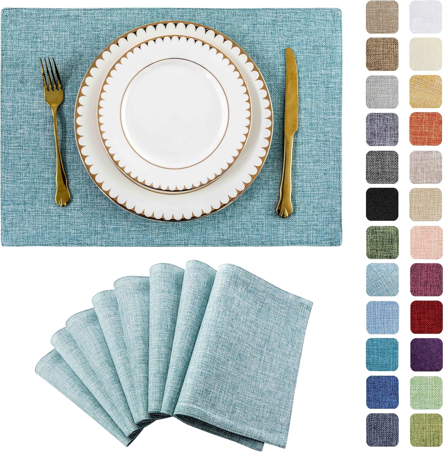 Home Brilliant Cloth Placemats Set of 8 for Holiday Dinner Linen Placemat Heat Resistant Dining Table Place Mats for Kitchen Table, 13 x 19 inches, Teal