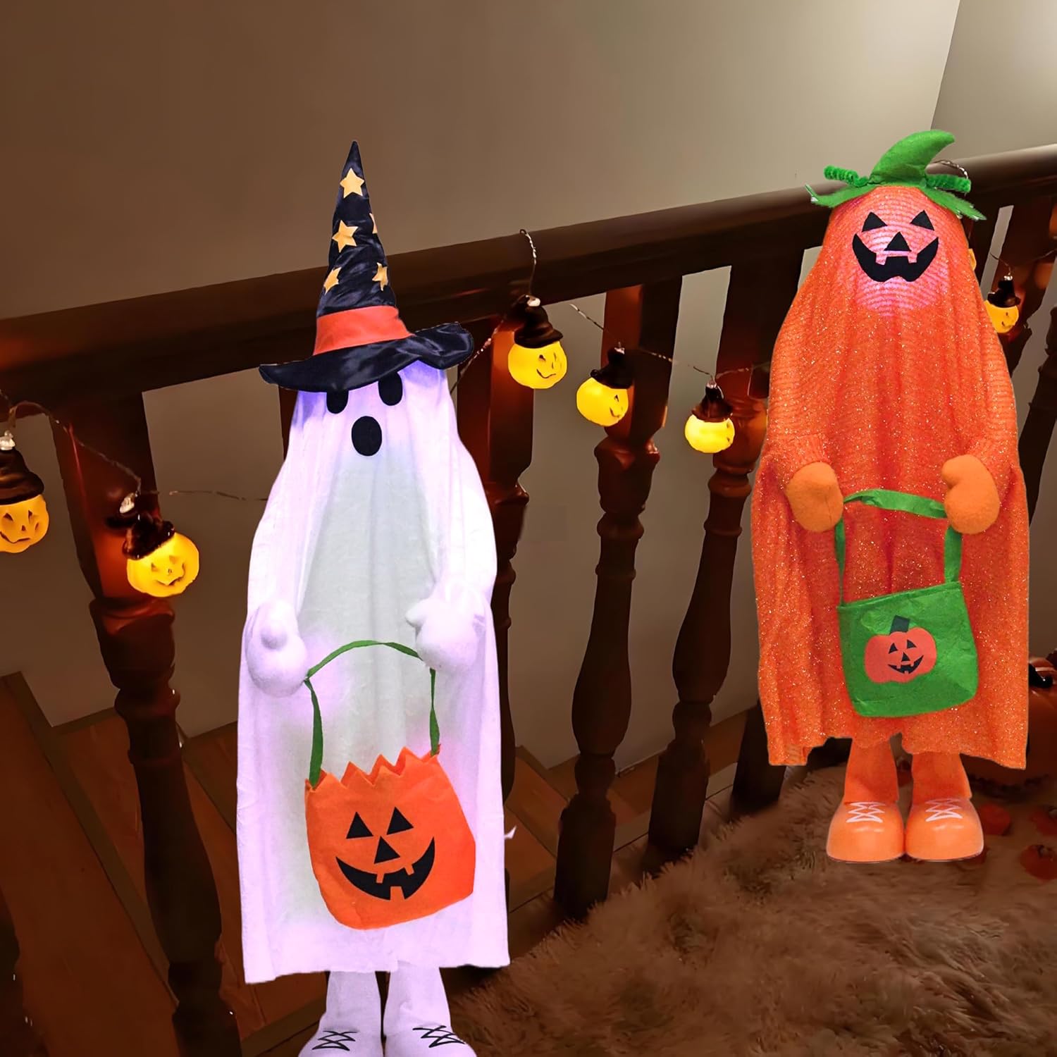 37" Front Porch Light up Halloween Ghost Figure Décor, Kit Standing Trick or Treat Indoor and Outdoor Decorations-Start