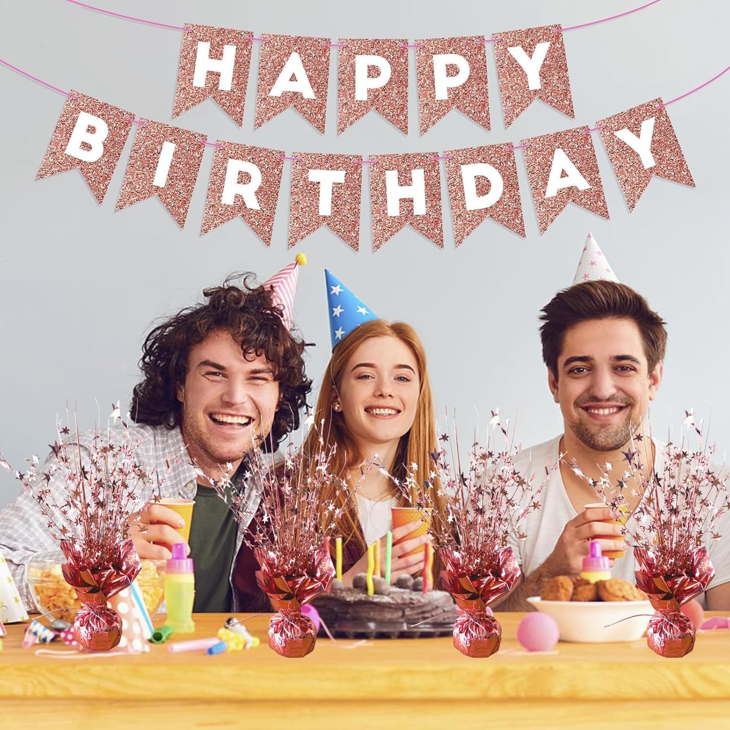 6 Pack Metallic Foil Spray Centerpiece Star Table Decoration Burst Table Centerpieces for Birthday Wedding Anniversary Graduation Holiday Party Supplies Decor, Rose Gold