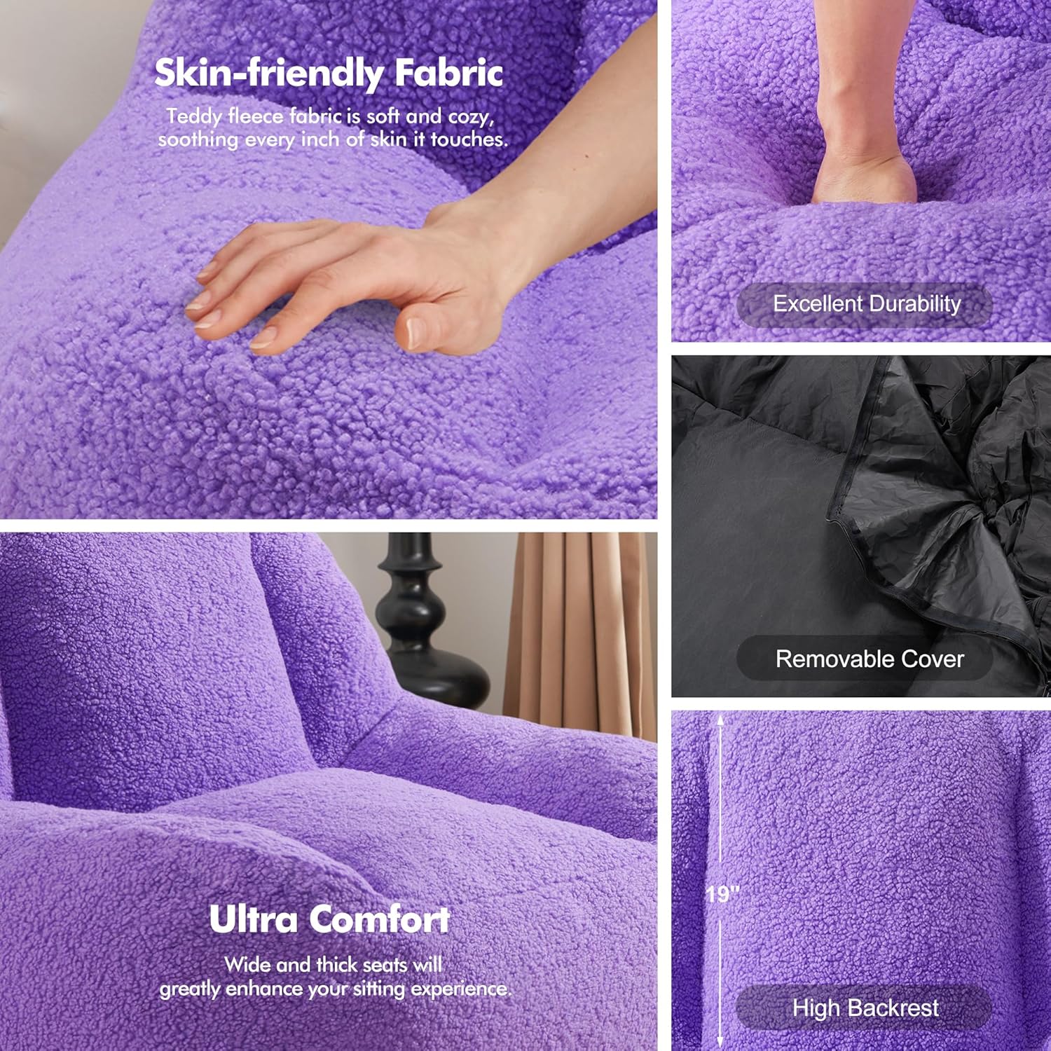 - No Assembly: This sherpa accent chair is pre-filled,you don't need to fill it yourself. It is shipped compressed and will expand right after you open the package. Simply cut the package open and enjoy the amazing bean bag sofa,saving you time and effort, enjoying it at once. If you have any questions, please do not hesitate to contact us, we are at your service 24 hours a day!