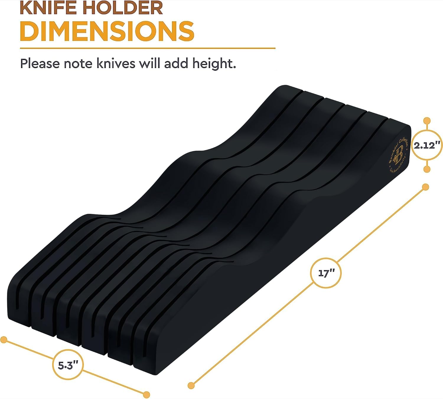In-Drawer Knife Block - Bamboo Knife Drawer Organizer for Kitchen - Fits 5 Long + 6 Short Knives | Store Knives with Blades Pointing Down - Wooden Steak knife Holder without Knives (Black)