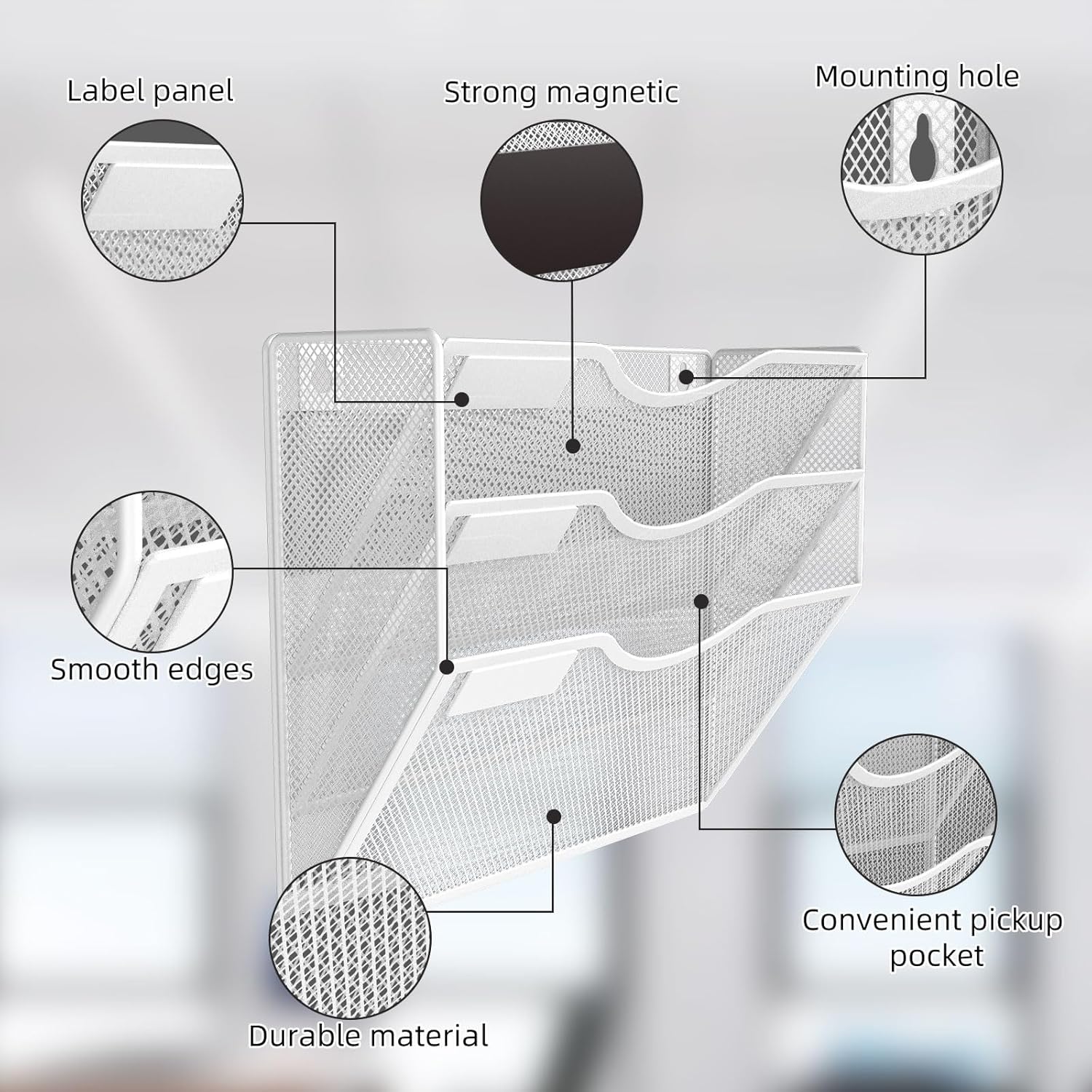 - 【Durable Metal Construction】Crafted from high-quality metal with an attractive mesh wire design, this magnetic hanging file organizer features a durable powder coat finish that is resistant to oxidation and rust. Please exercise caution when removing the product from an iron surface due to its strong magnetic force.