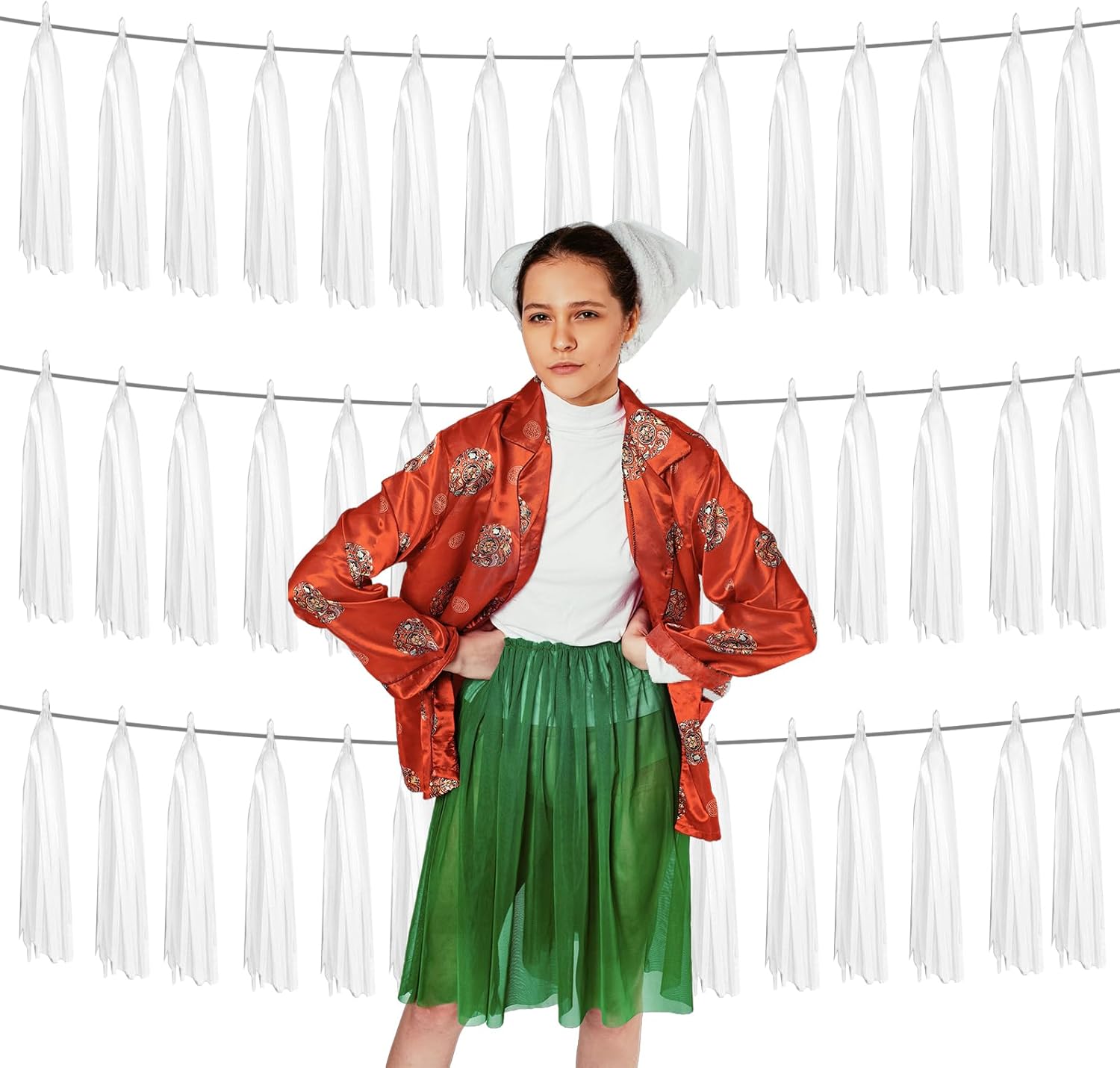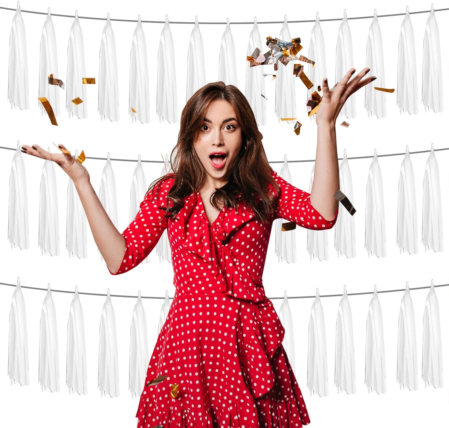3P White Foil Fringe Metallic Tassel Streamers Banner Tassel Garland for Parade Floats, Graduation, Wedding, Birthday, Halloween, Christmas, Bridal/Baby Shower Party Decorations