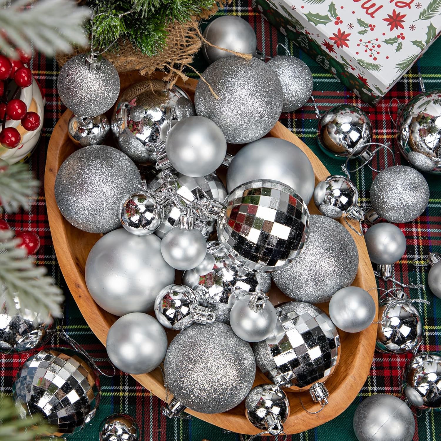 50pcs Silver Christmas Ball Ornaments Silver Large Shatterproof Christmas Tree Decorations Xmas Tree Ornaments Balls with Hanging Loop for Xmas Wedding Holiday Party Wreath Home Decor