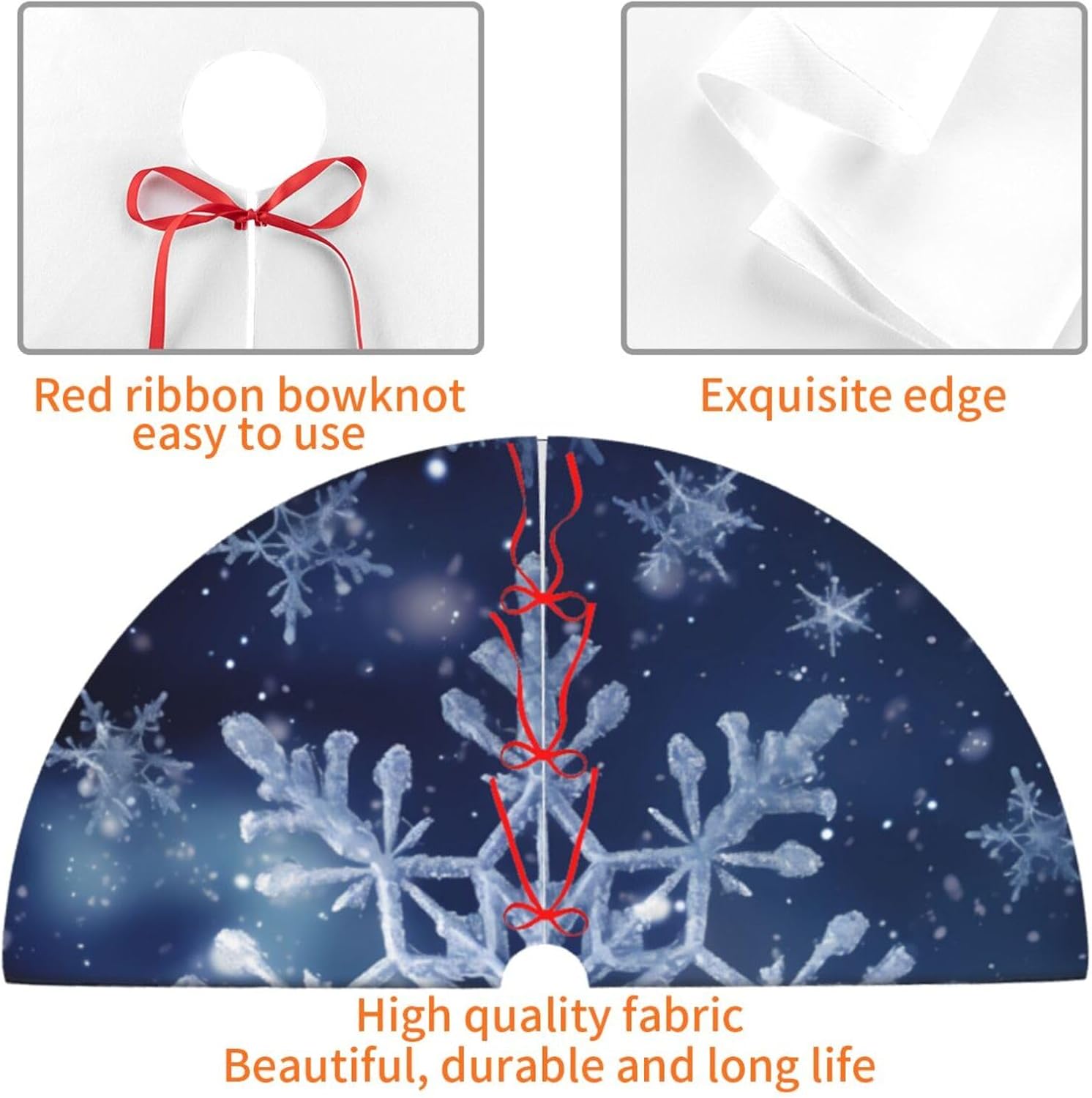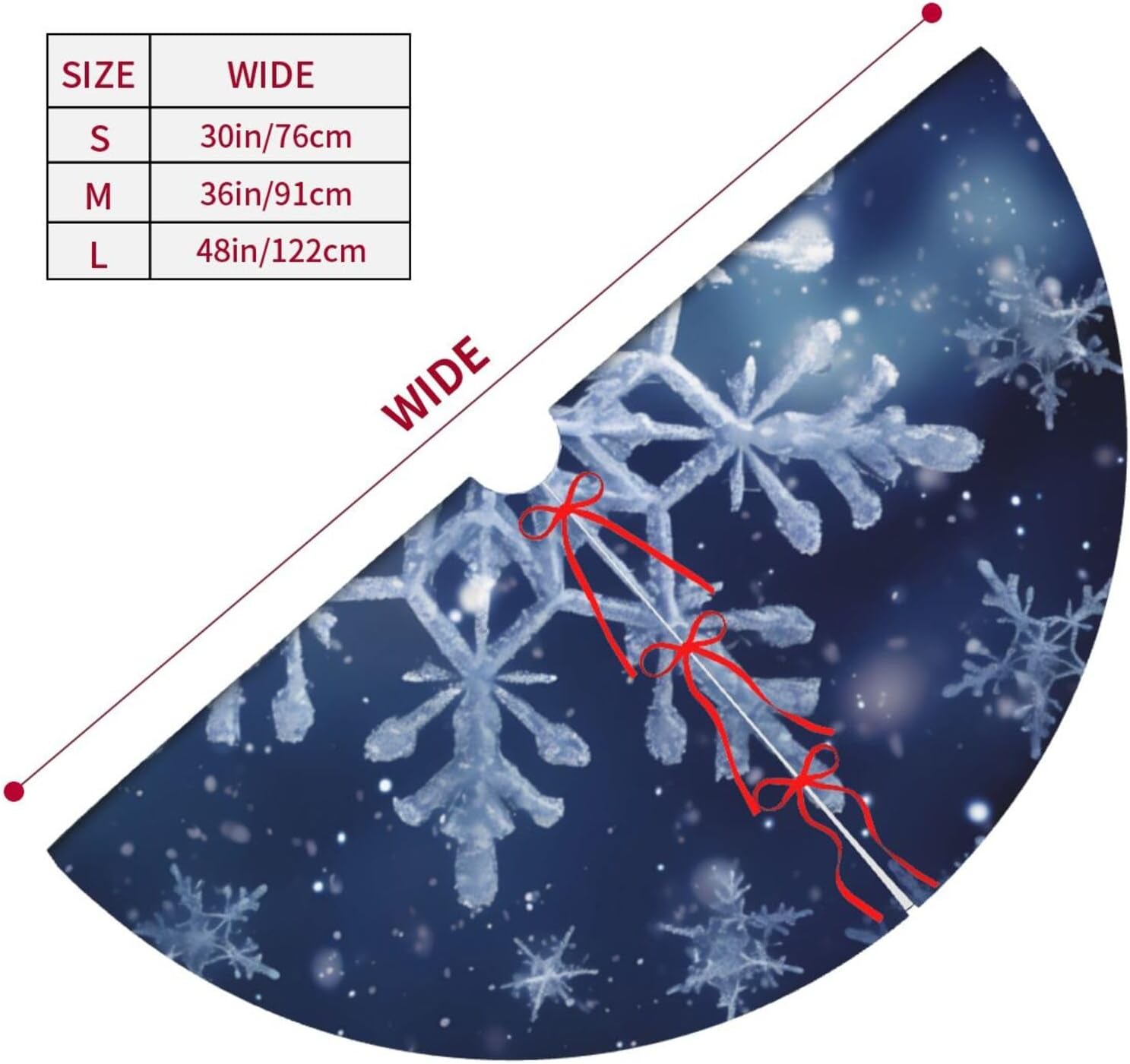36" Blue Snowflakes Christmas Tree Skirt, Tree Mat Base Cover for Xmas Festive Holiday Party Decoration Ornaments