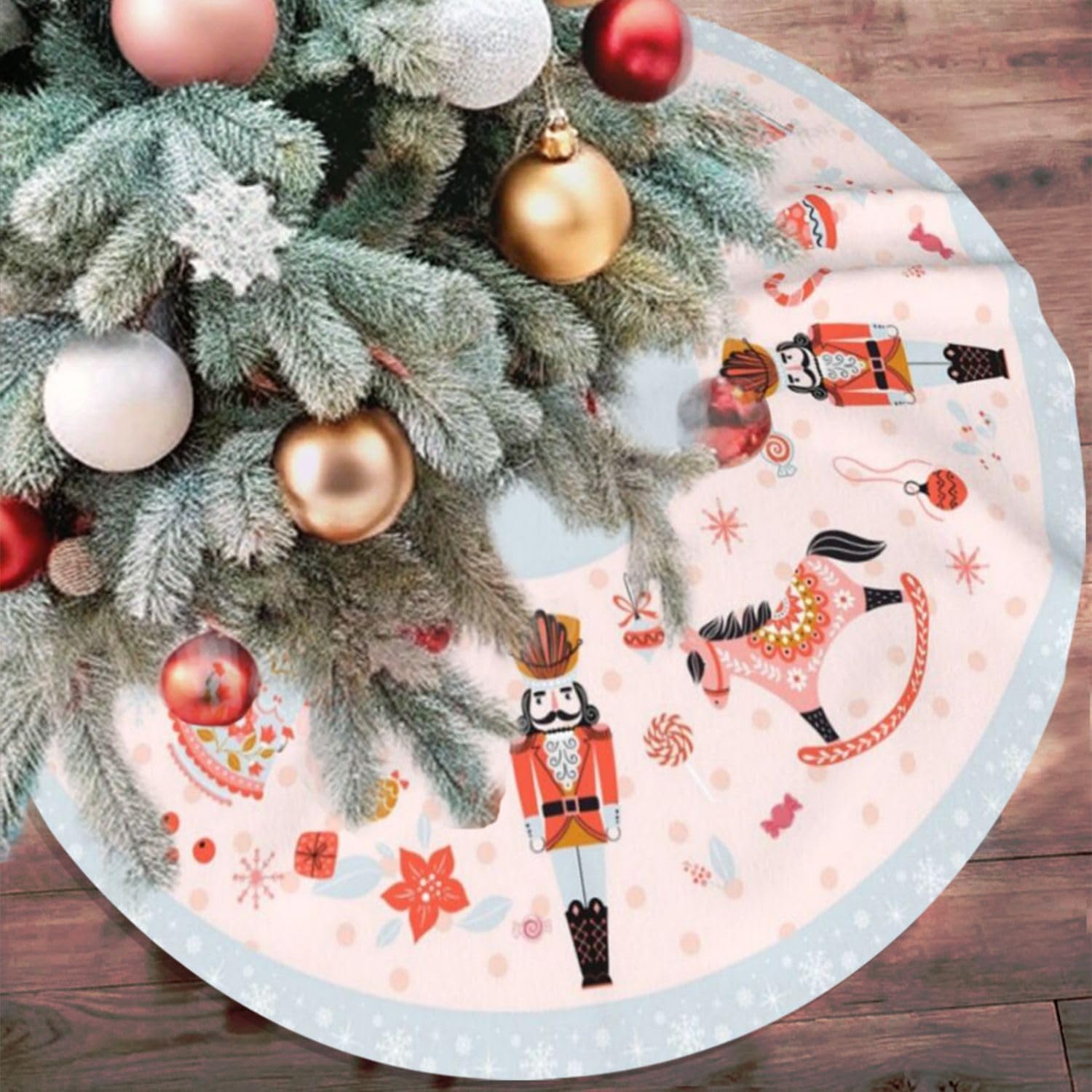 48" Large Christmas Tree Skirt, Nutcracker Candy Pattern Tree Mat Base Cover for Xmas Festive Holiday Party Decoration Ornaments