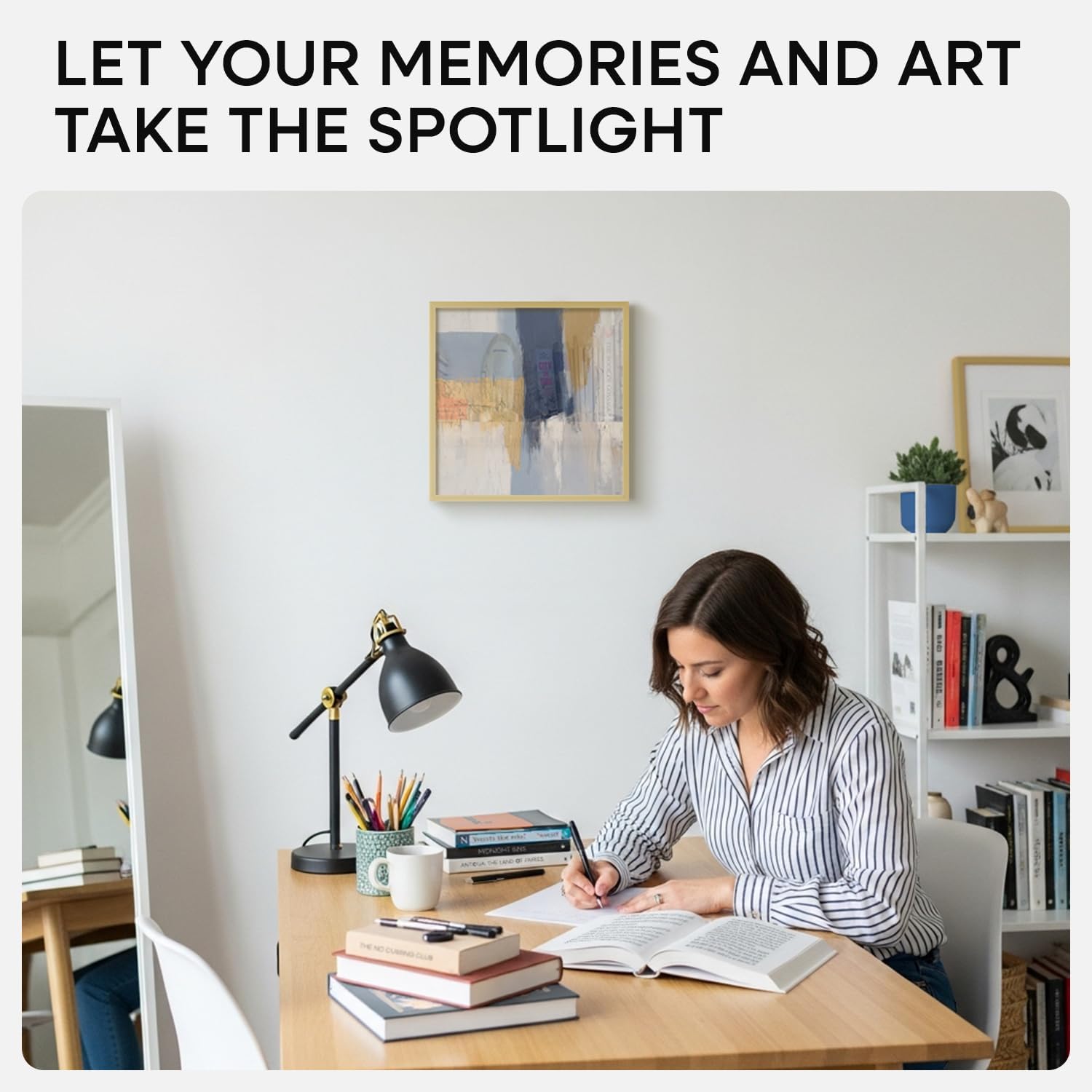 - SUBTLE GLOW. SIMPLE FORM. This frame’s polished champagne gold hue adds just enough shine to catch the eye. Clean lines and a minimalist build keep the look modern and uncluttered.