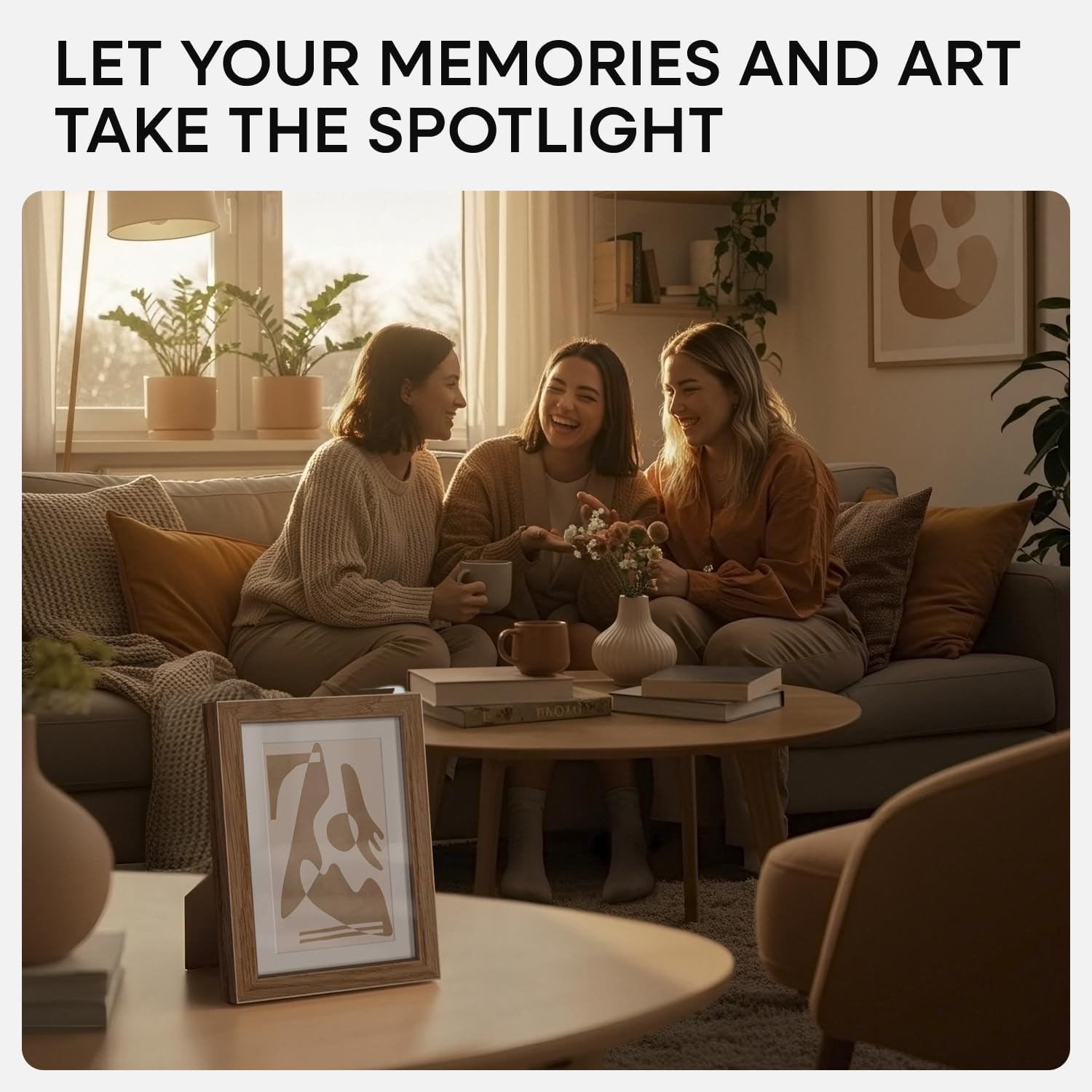 - LUXURY TEXTURE, NEVER LAMINATE Crafted from real oak with subtle grain and a matte finish, this frame delivers an upscale gallery look—not a mass-produced feel.