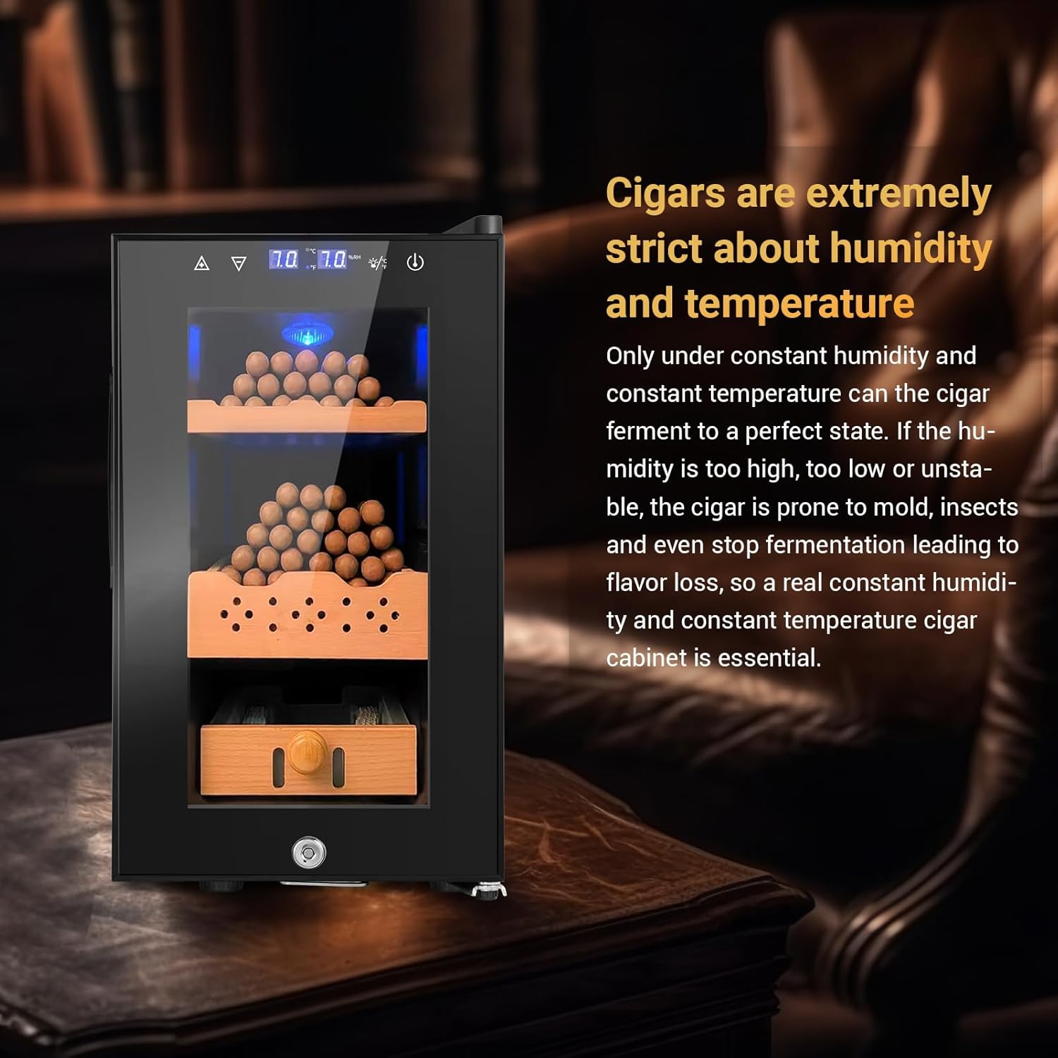 25L Cigar Electric Humidor, 200 Counts Large Capacity,Thermostatic Electric Cooler Cabinet with Digital LED Screen, Safety Lock,Smart Humidity & Temp Control, Gifts for Men