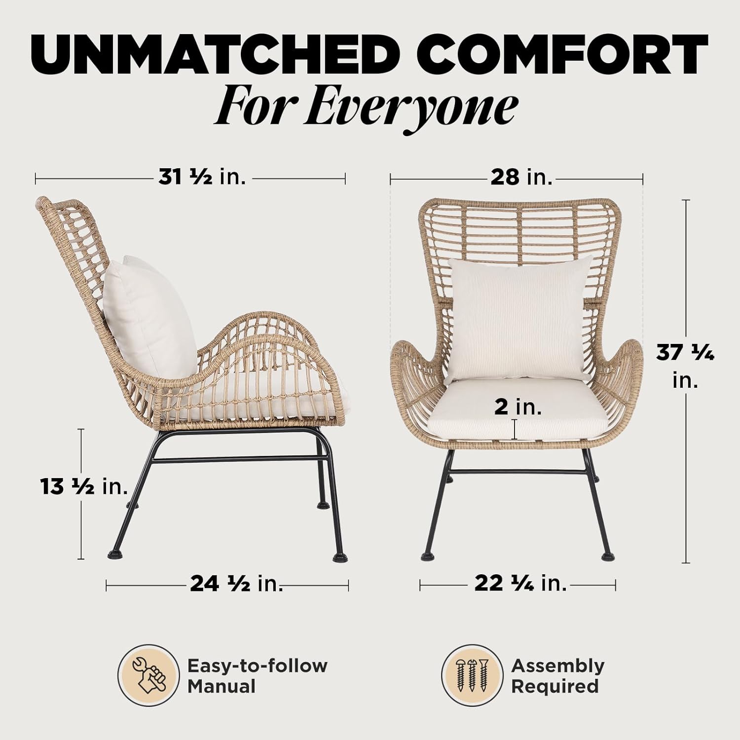IDZO Isabelle Wicker Chairs Set of 2, 2000 Hours UV Wicker Rattan Chair, 500lbs Capacity Boho Patio Chairs with Thick Olefin Cushions and Pillows for, Indoor Use