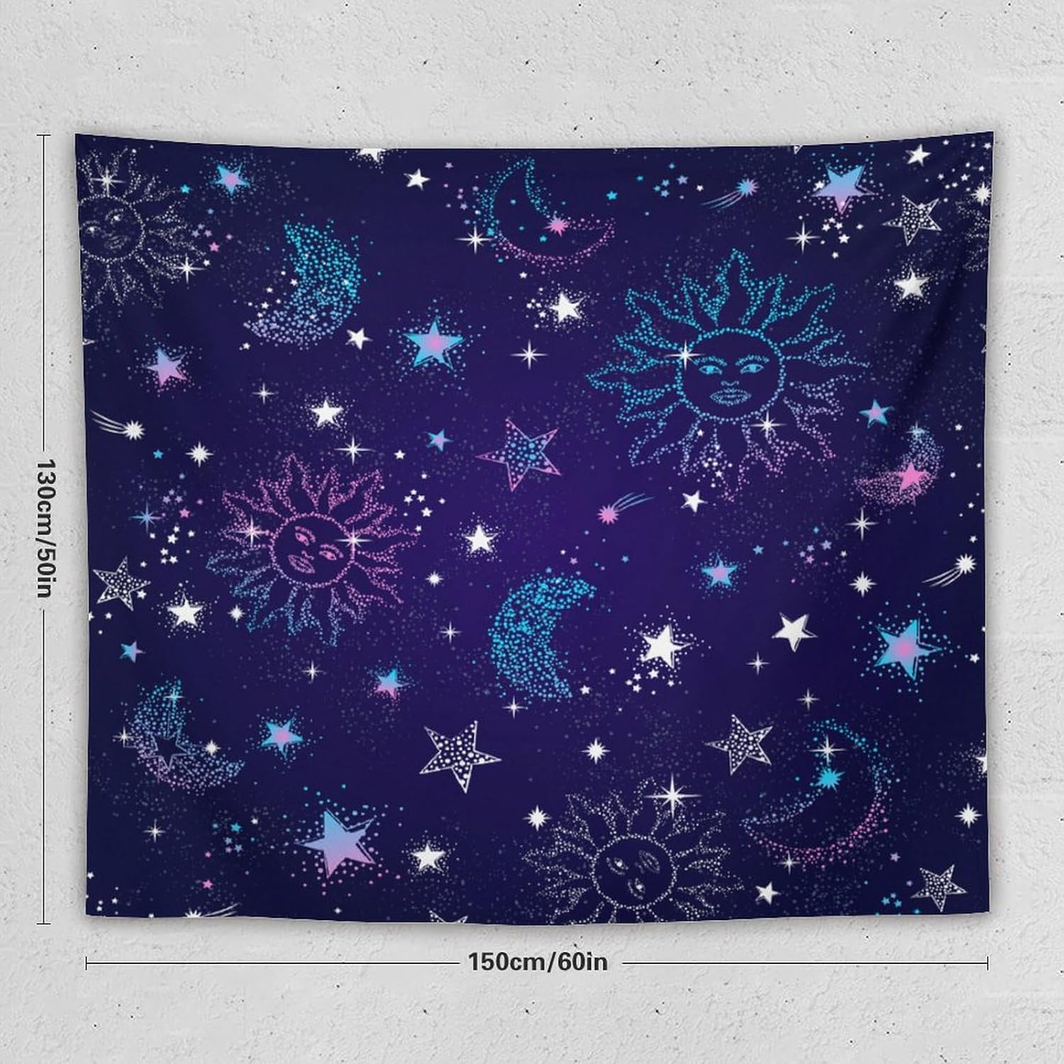 HZOHNAGO Boho Sun Moon Tapestry Purple Blue Sun Stars Galaxy Pattern Printed Wall Tapestry Wall Hanging for Bedroom Living Room Dorm 60" W x 50" H