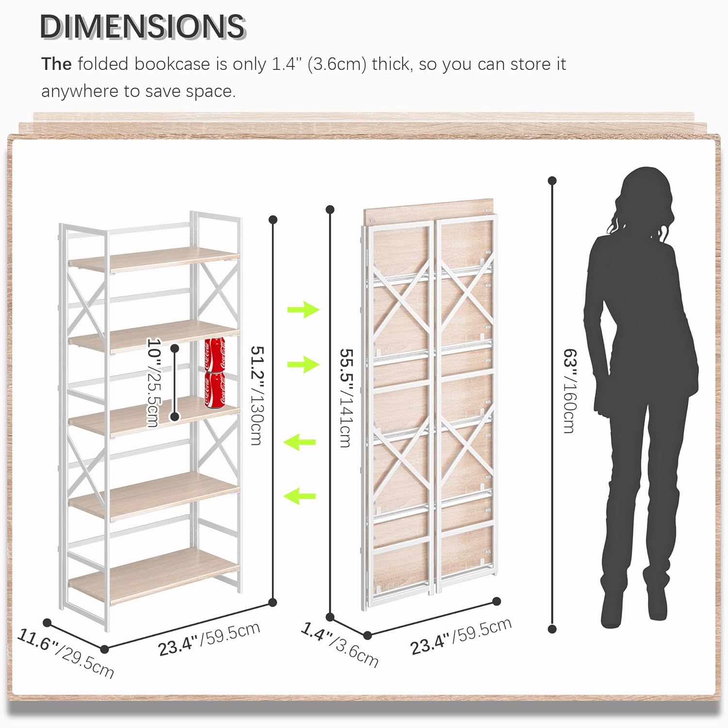 - 【No Assembly Book Shelf Folding Sized】23.4x1.4x55.5 inches (59.5x3.6x141cm)
