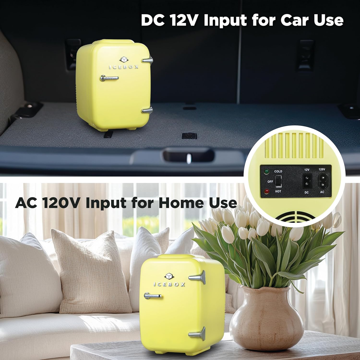 IBMF4SUN Fridge for Bedroom, Skincare, Portable Cooler & Warmer for Makeup, for Office & Home Refrigerator, Mini (4 L / 6-Can), Sun Yellow