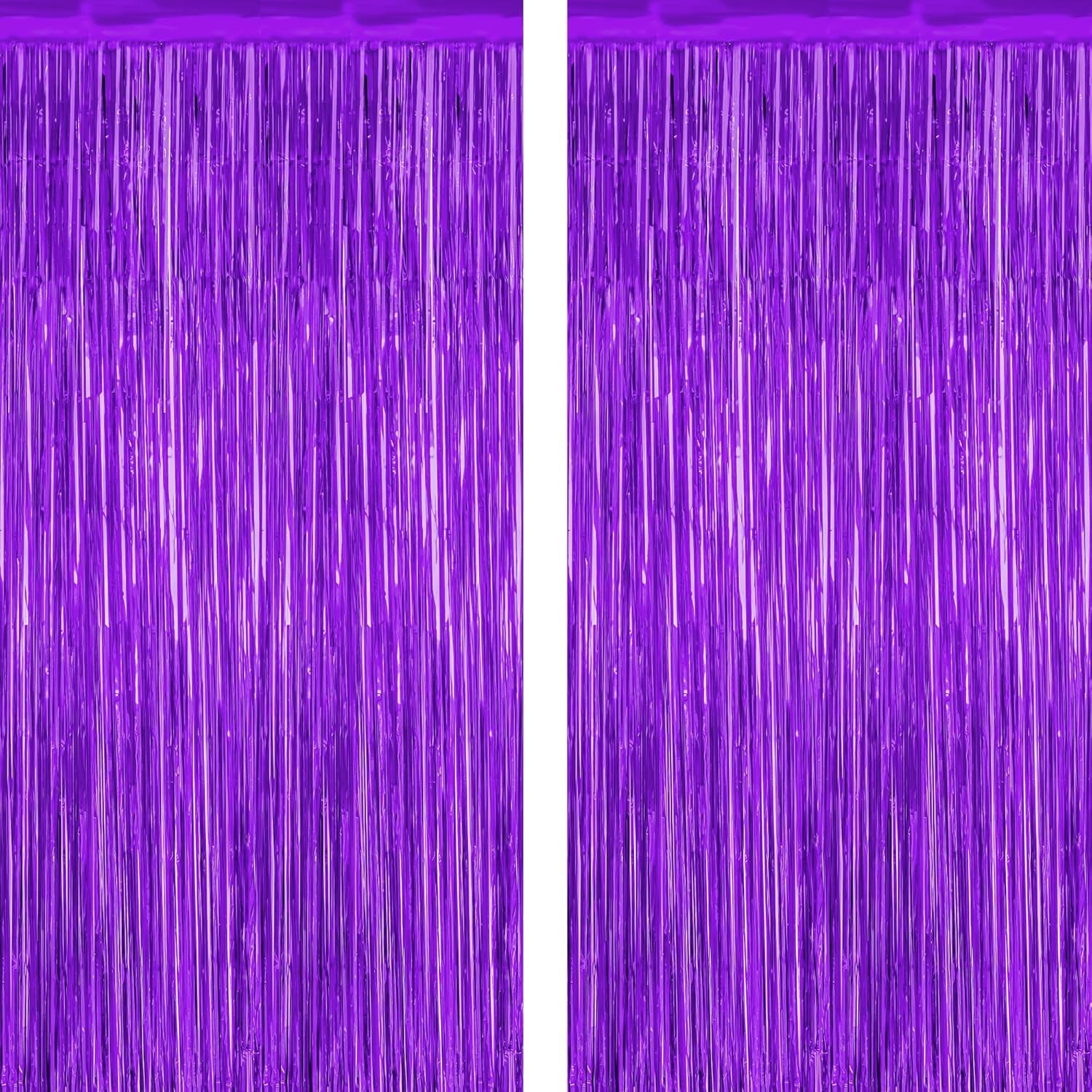 2 Pack Backdrop Curtains, 3.28 FT x 7.05 FT Purple Tinsel Backdrop, Metallic Purple Backdrop Fringe Curtains Foil Streamer, Party Supplies Photo Props for Anniversaires Wedding Party