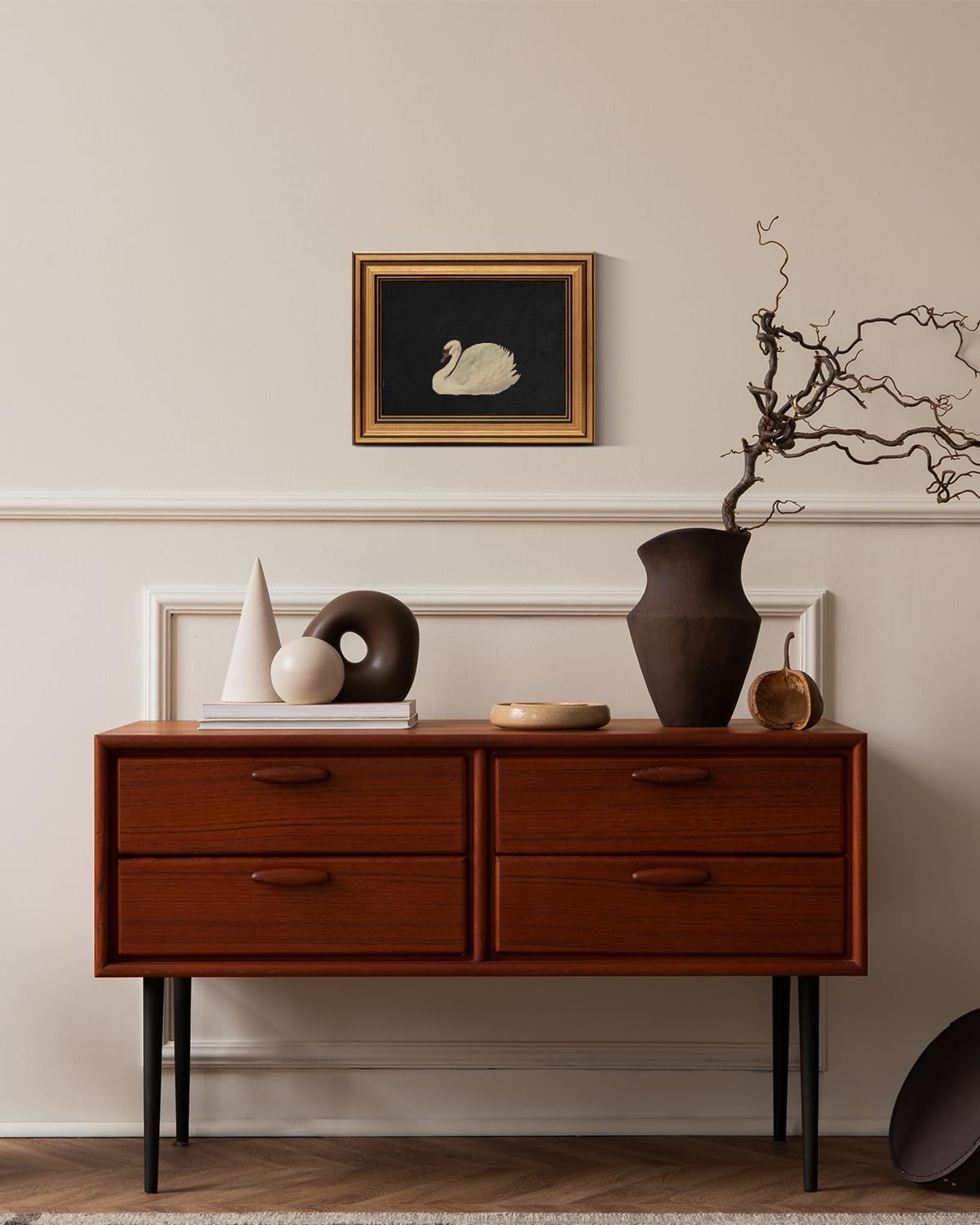 HUARCEY Gold Framed Vintage Wall Art for Living Room, Grace Swan Art Painting Pictures Rustic Animal Bathroom Prints Farmhouse Wall Decor Mother's Day Gifts for Mom Canvas Swan Shelf Decor for Bedroom
