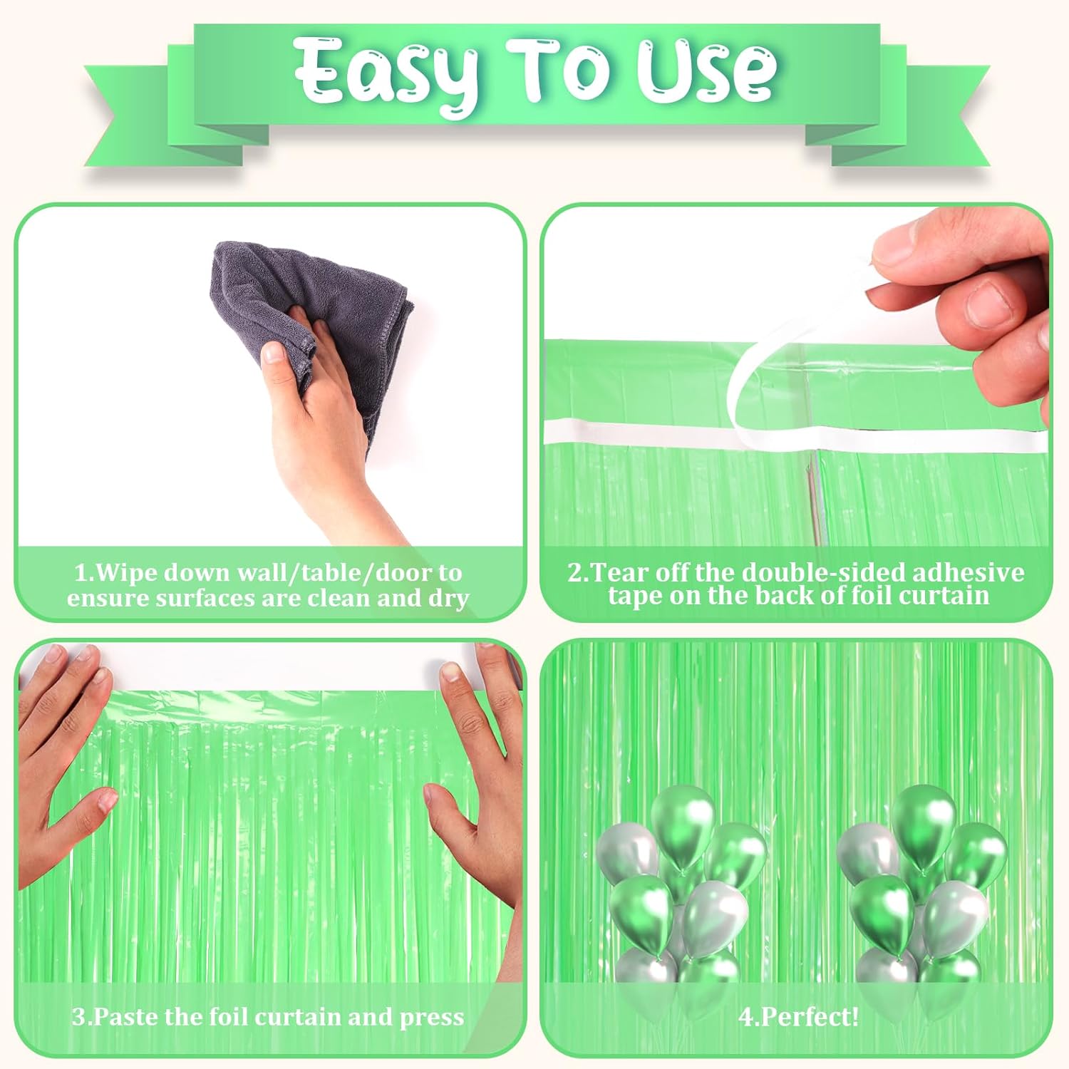 - Warm Tips: These pastel green party streamers are made with durable tinsel, stay shiny and reusable. When your package arrives, check it and contact us if anything is defective or missing, replace it fast or refund