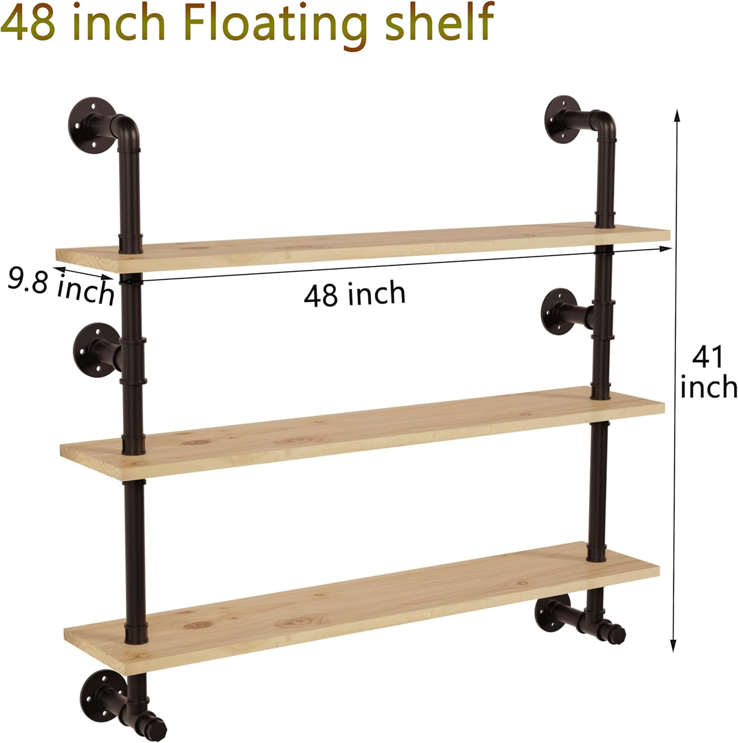 - 【Easy Assembly Required 】 This 48 inch pipe floating shelves come with step-by-step instructions and all fittings,including iron pipes,flanges,planks and screws.Just prepare the drill,and follow the installation steps,you will find installing the shelves is a breeze.
