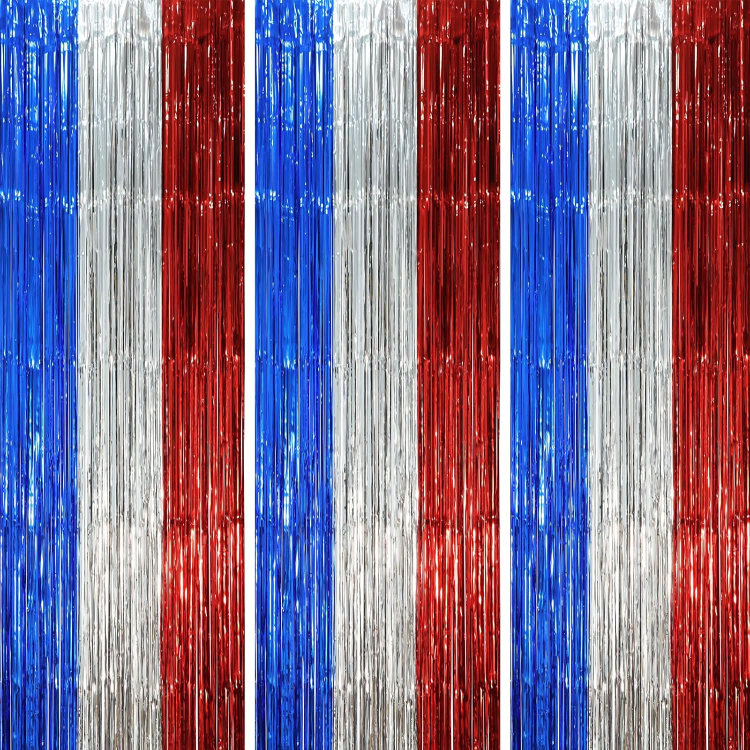 - Package Included: 3 packs of blue red and silver foil fringe curtains, the size of the foil curtain is 3.3*8.2ft. It's long enough to fit any occasion