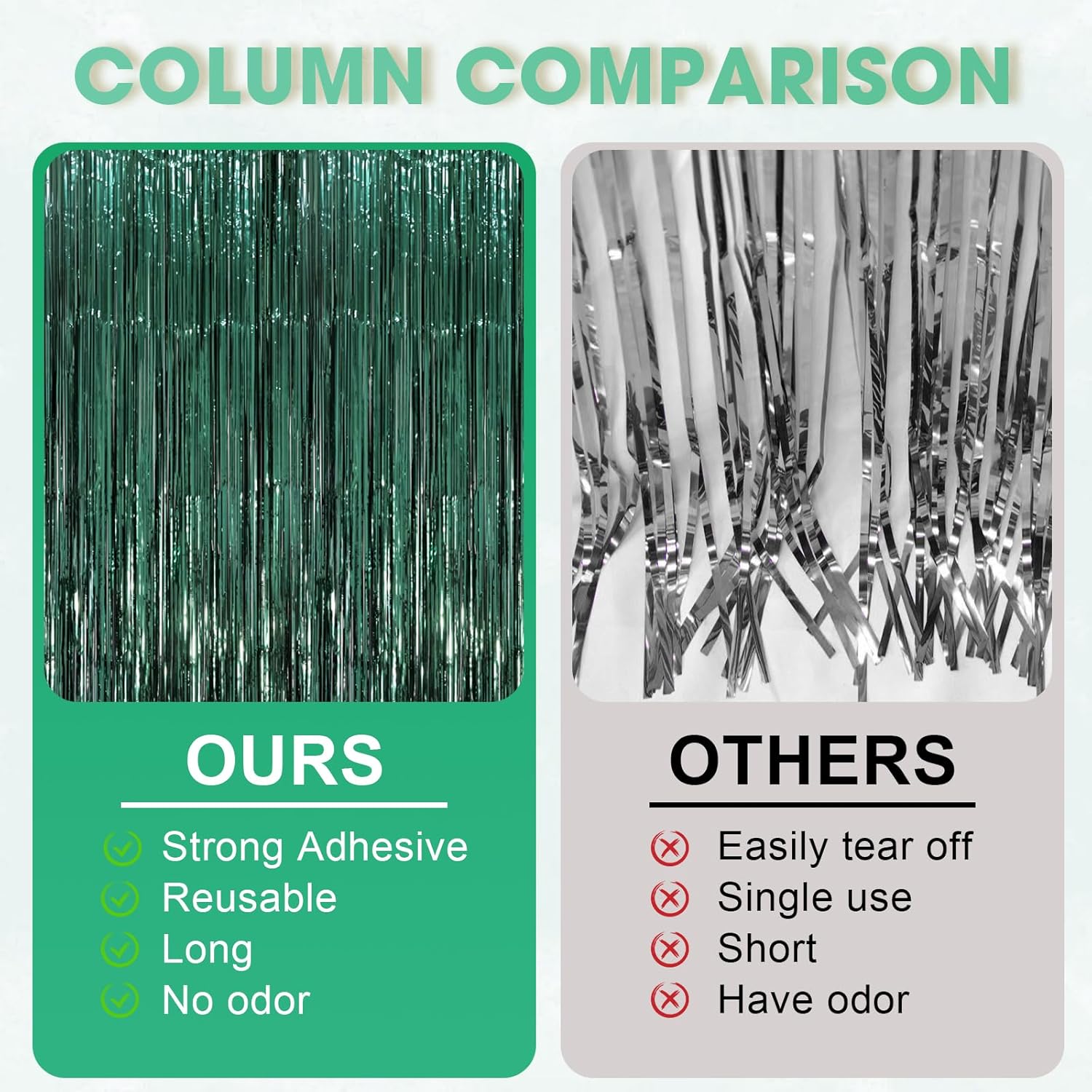 - Package Included: 3 packs of green foil fringe curtains, the size of the foil curtain is 3.3*8.2ft. It's long enough to fit any occasion