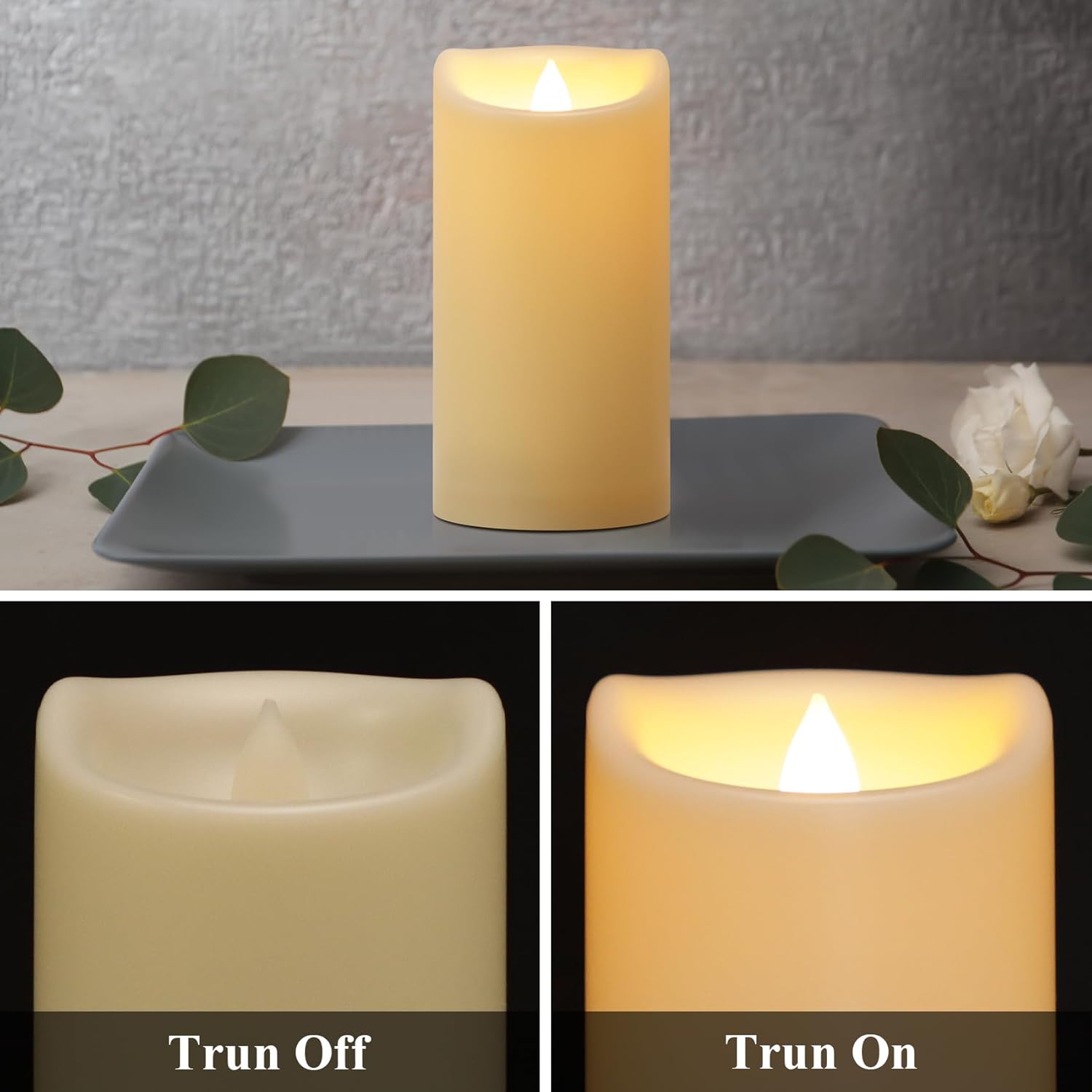 - Convenient Remote Control with Timers: When these battery operated flameless candles are placed where hard to reach, you can control them by remote within 50 feet. Set 2/4/6/8H timer easily then it will turn on automatically at the same time every day. Also you can adjust the light mode (flicker/steady glow) and brightness level as you need. The remote is required 2 AAA batteries(not included)