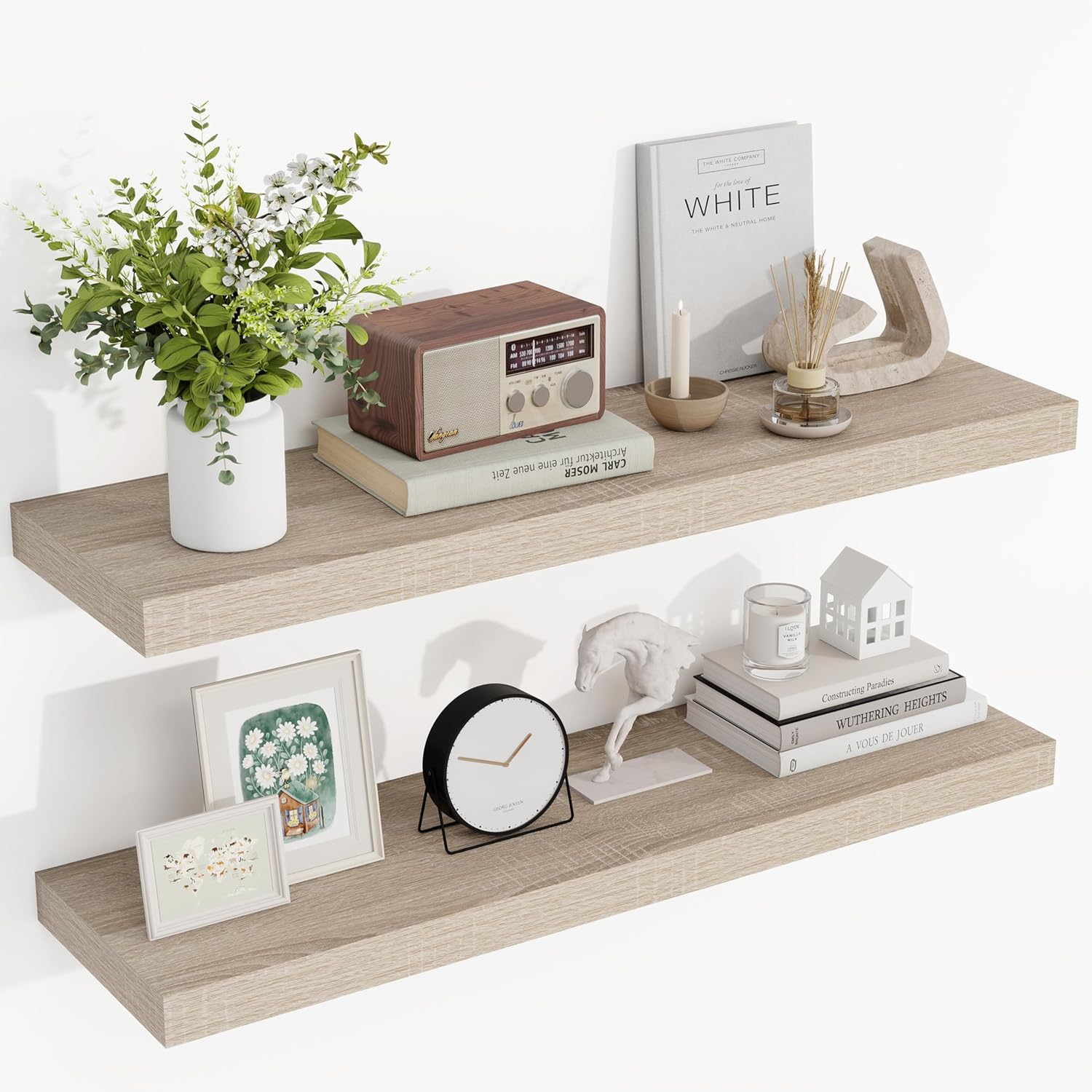 36 Inch Floating Shelves, 3D Textured Wood Grain, 36"x9.25"x1.5" Inch Deep Floating Shelves for Wall, Wooden Shelves for Bathroom, Bedroom, Living Room, Vintage White Oak