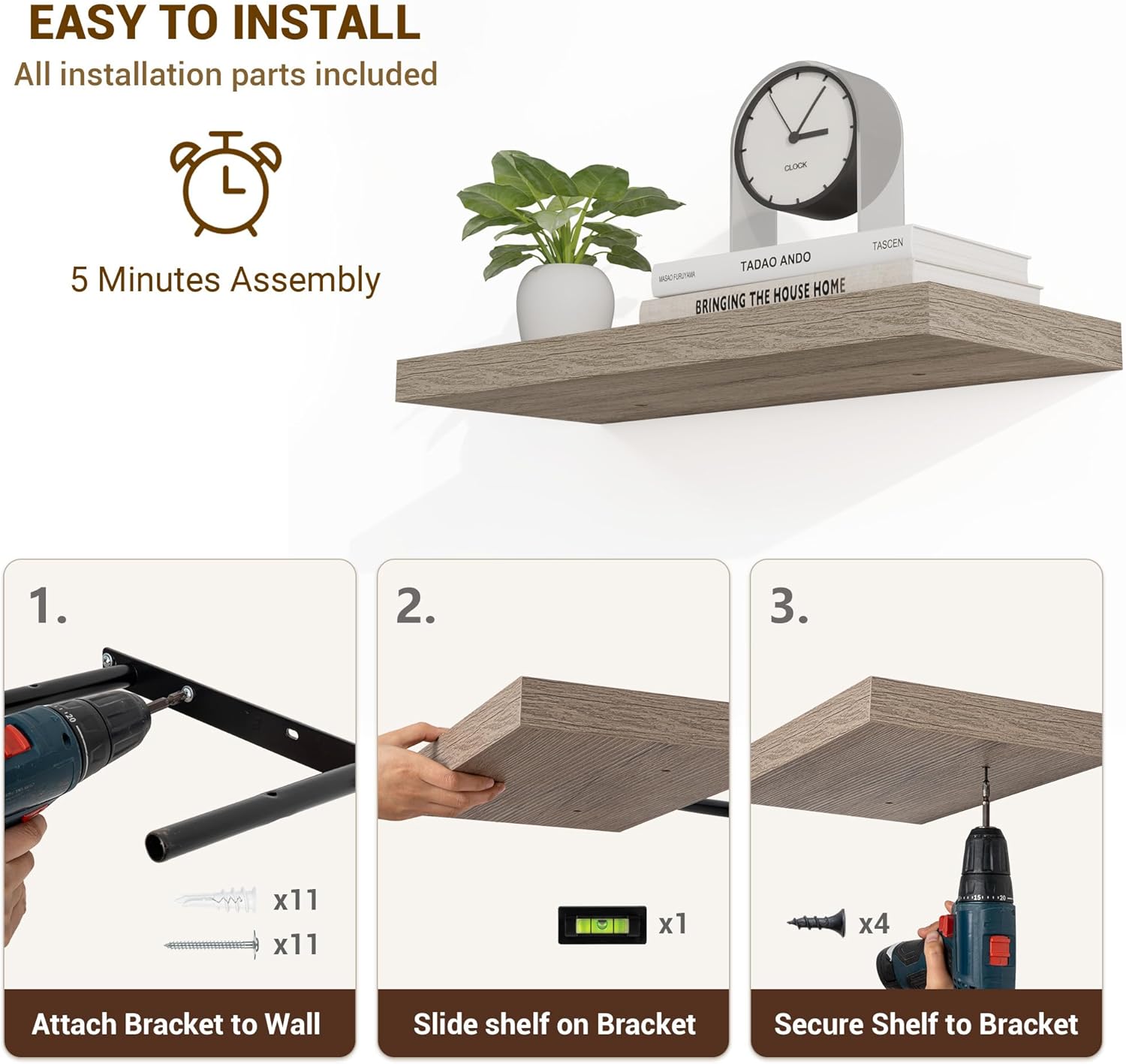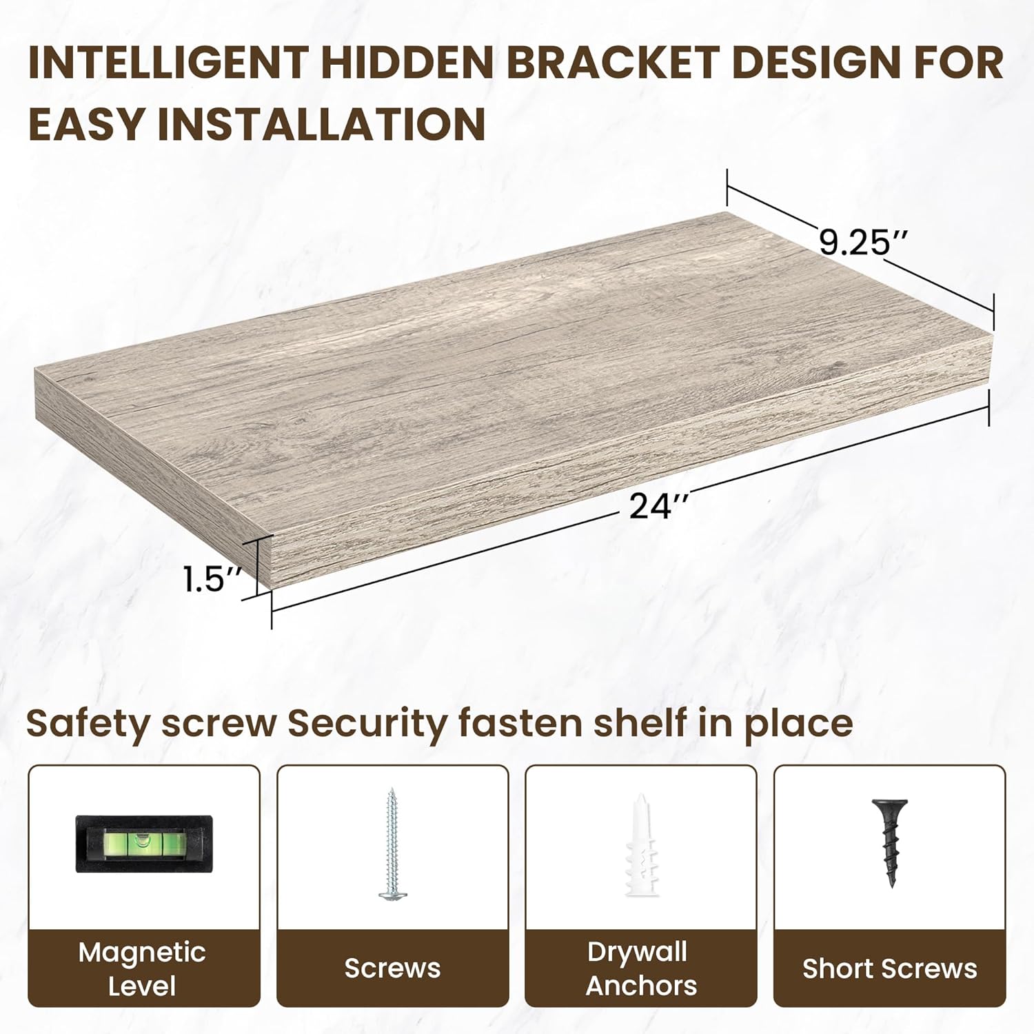 - 【Easy Installation】Designed with user convenience in mind, these shelves come with all necessary mounting hardware and clear instructions. You can have them up and ready to use in less than 5 minutes. Plus, our customer service is always ready to assist with any queries or concerns, ensuring a hassle-free experience