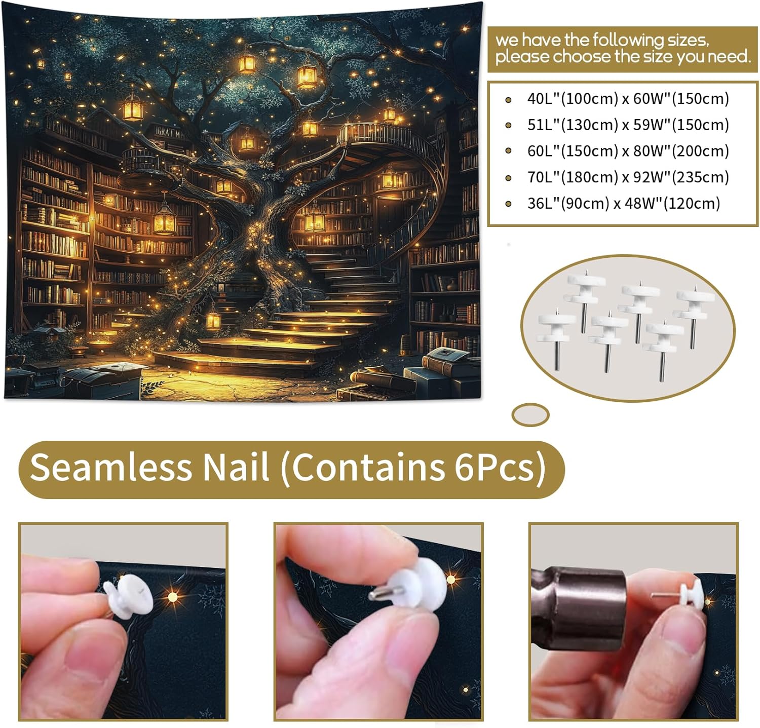 - DESIGN :The Bookshelf Tapestry adopt HD digital printing,Don’t worry about fading,vibrant colorful design will light up your room!