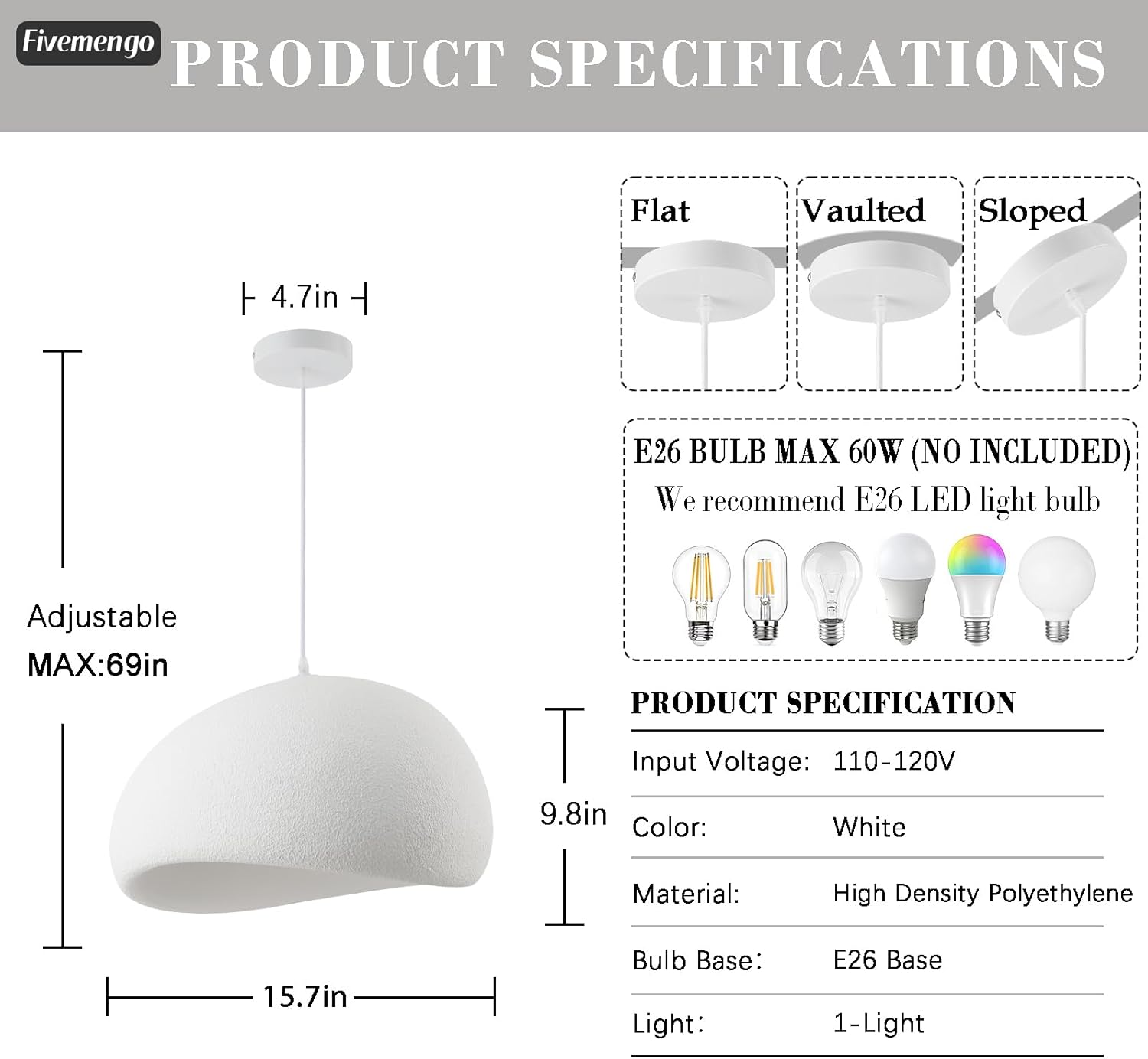 - Light fixture form : Pendant