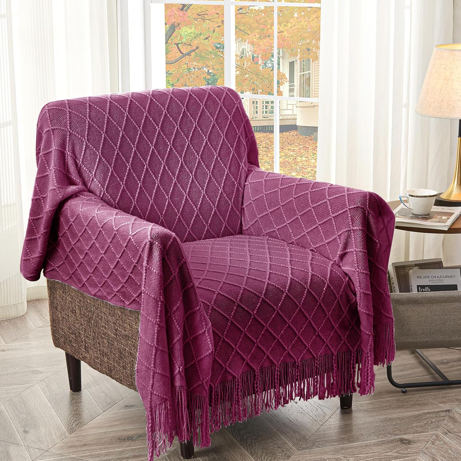 - 【FANTASTICAL COMBINATION】: Decorative blankets and throws ,nice raised diamond shape knit design and well-arranged fringes. It's couldn't be better to decorate your home for Christmas, Thanksgiving, and other holidays. A good cozy blanket is a combination of the right price, satisfactory adaptability, and lovely design.