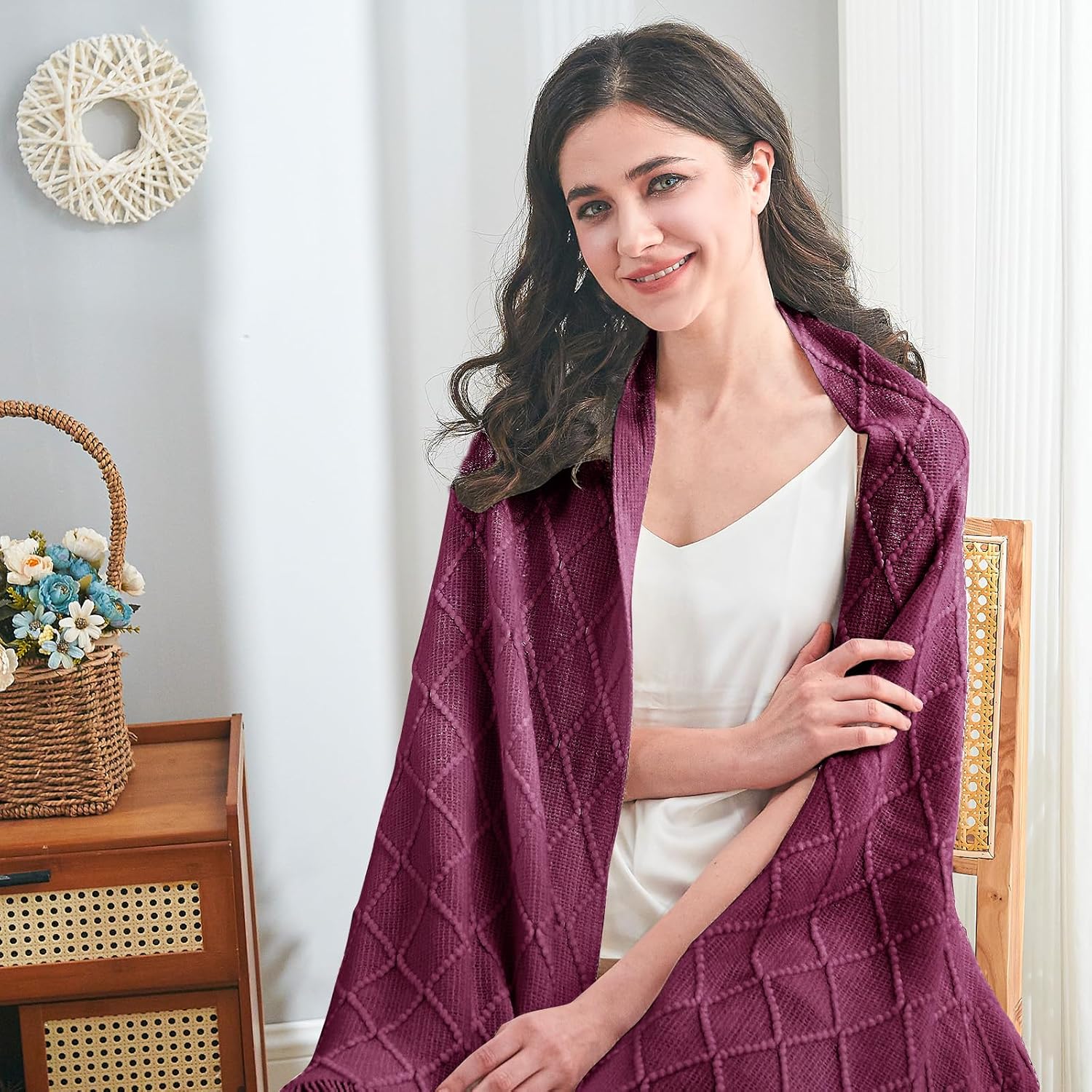 - 【GIFT IDEAS】: Special knitted diamond patterns add a unique accent to your room and people draping it as a shawl. Very suitable for tasteful homeowners. Throw blanket for women, classic but not too tacky as a housewarming gift. Tips: Due to different lighting, display settings, or resolutions, the difference in color happens. We are dying to show the color. To do so, one of the images shows the color difference in different lighting. Hope these instructions would help you to buy a throw.