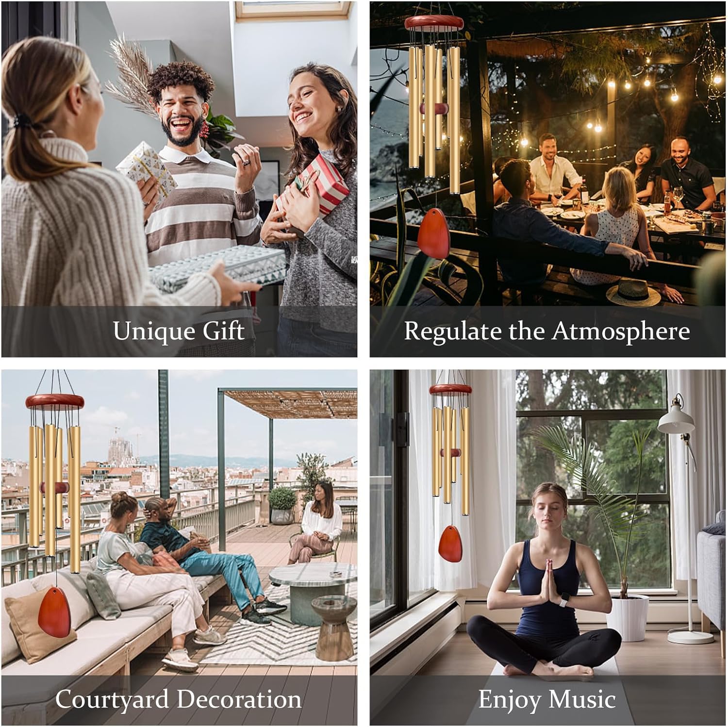 - ♬【Premium Material】Through repeated tests and experiments on a large number of materials, due to the characteristics of pine wood is not easy to crack and decay, we chose pine wood as our wood material. The main body of the wind chime is made of aluminum tubes and chamfered with spray paint, which is rust-proof and sturdy, making the life of the wind chime much longer and more beautiful and durable at the same time.