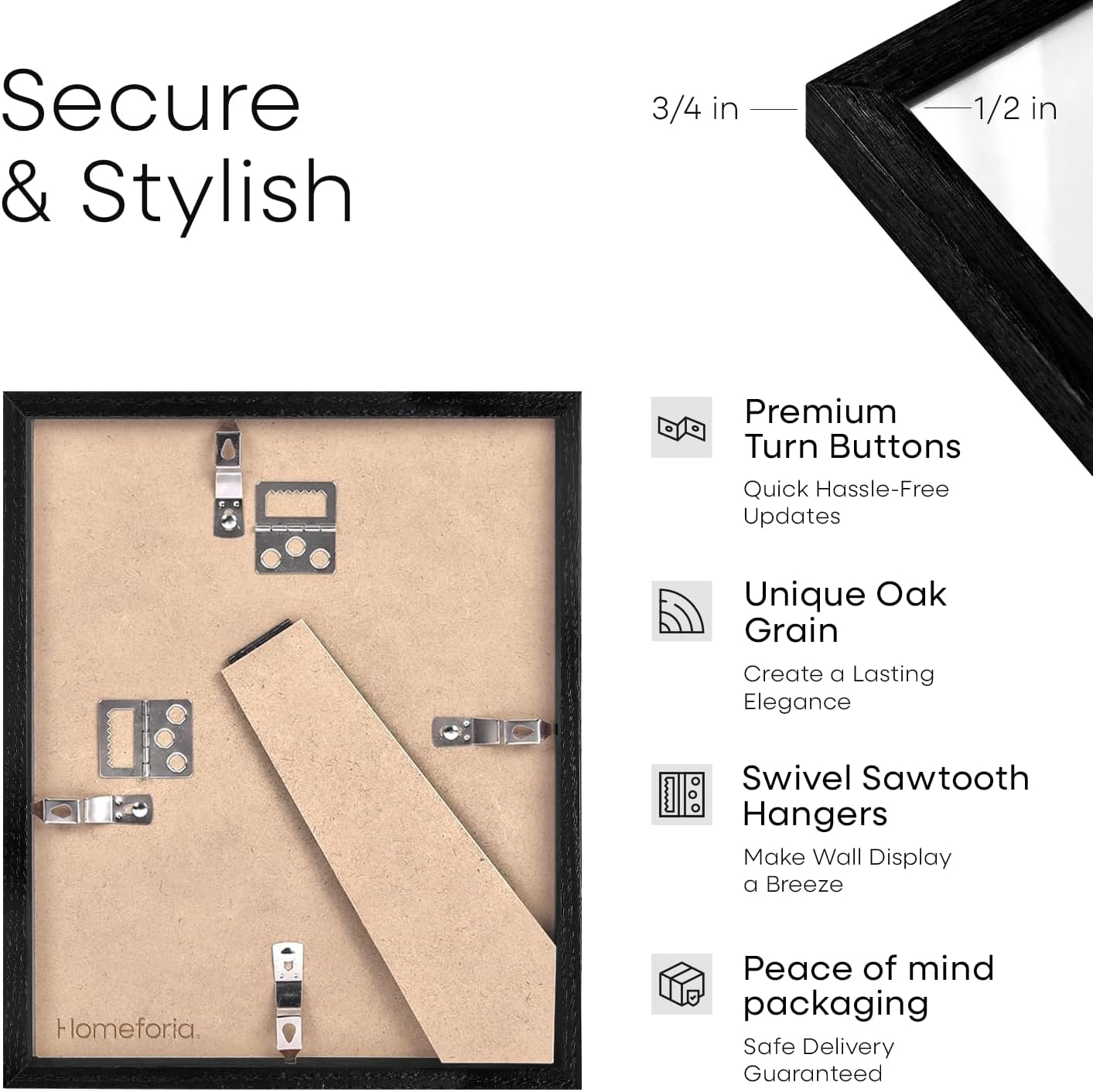 Homeforia 11x14 Diploma Frame Black Wood, High End Black Oak 11 x 14 Certificate Frames with Mat 8.5x11, 14x11 Wooden Document Matted Frame, Award Graduation Frames, Tempered Glass, Wall Kit, Set of 1