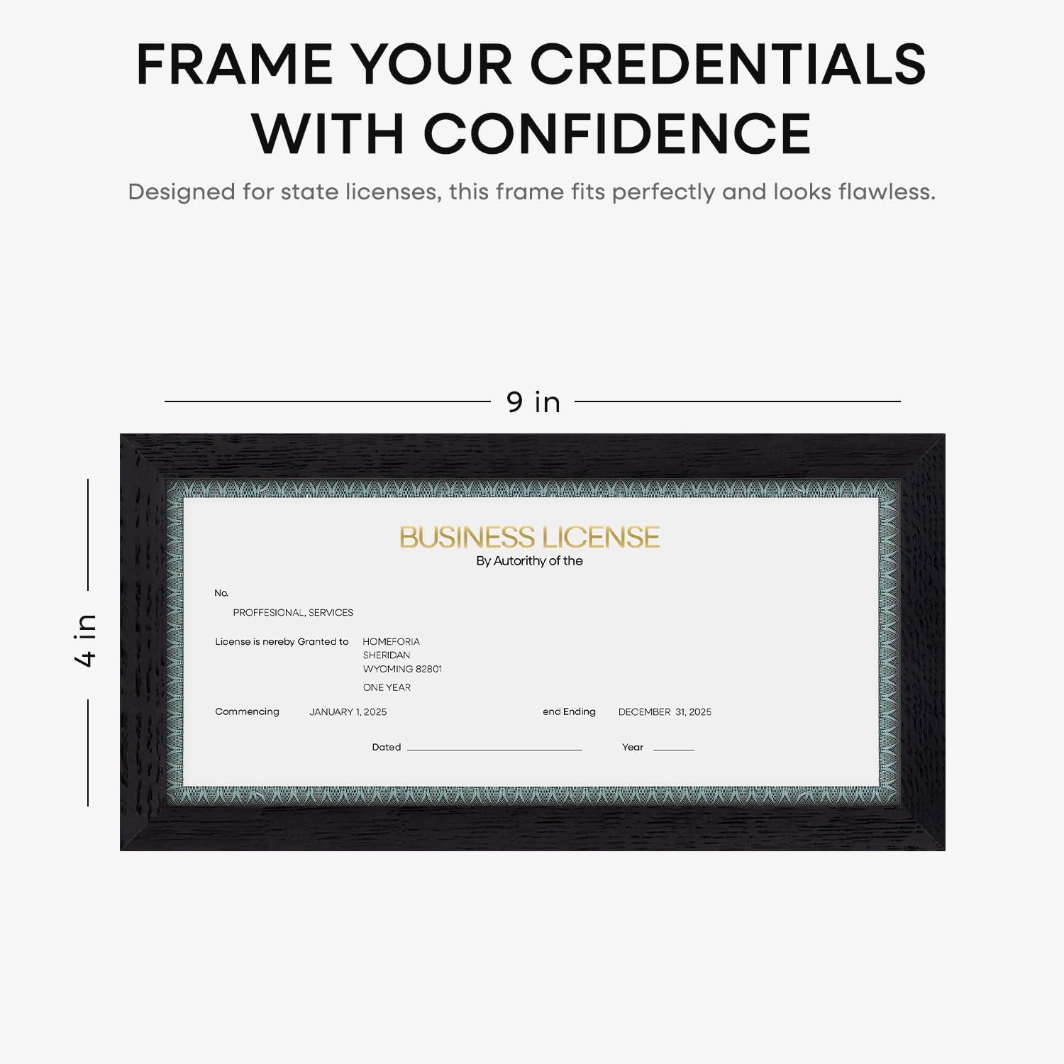 Homeforia 4x9 Business License Frame Black, High End Oak 4 x 9 Black Wood Certificate Frames, 9x4 Wooden Document Frames for Wall or Tabletop, 4 by 9 Picture Frames, Tempered Glass, Wall Kit, Set of 1