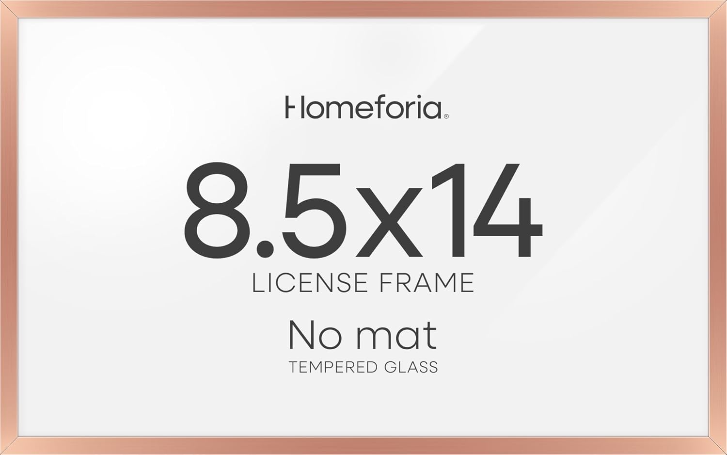 Homeforia 8.5x14 Marriage License Frame, High End Metal 8.5 x 14 Rose Gold Marriage Certificate Frames, 14x8.5 Picture Frame for Wall & Tabletop, 8.5x14 Photo Frame, Tempered Glass, Wall Kit, Set of 1