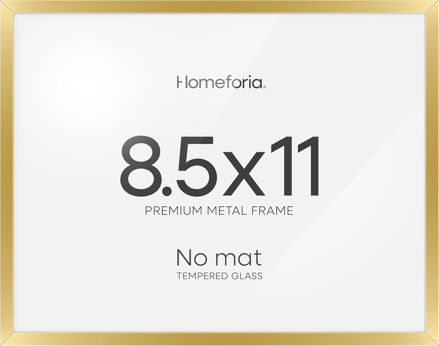 Homeforia Gold Diploma Frame 8.5 x 11, High End Metal 8.5x11 Certificate Frames, 11x8.5 Document Frame for Wall or Tabletop, 8.5 by 11 Letter Size Graduation Frames, Tempered Glass, Wall Kit, Set of 1
