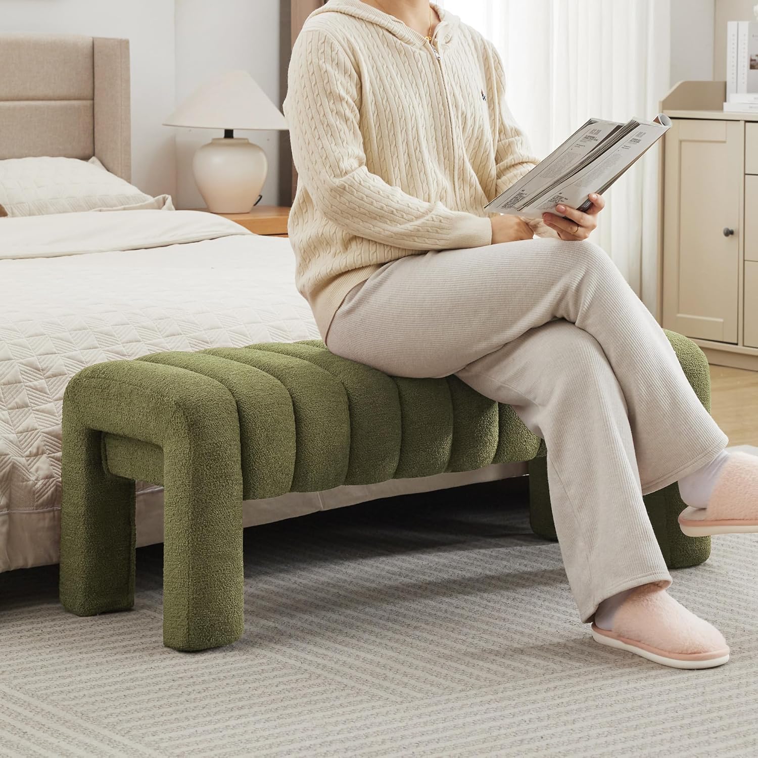 - 【Stylish and Comfortable Design】 The Scingu End of Bed Bench features a contemporary design with soft fabric that adds a touch of elegance to any room, blends well with a wide range of home styles, and easily matches your existing furnishings to help you create a comfortable, stylish living environment. Suitable for the bedroom, living room or entryway, this bench enhances your décor while providing a practical seating option