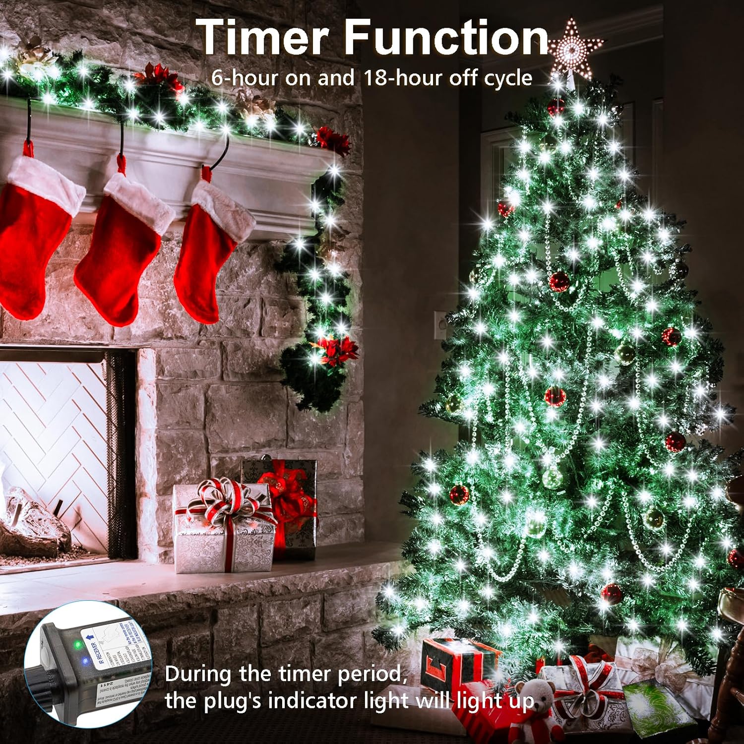 - [Multi-function Remote] 8 Modes - Combination, In wave, Sequential, Slo glo, Chasing/Flash, Slow fade, Twinkle/Flash, Steady on. Timer - 6 hours on and 18 hours off. Dimmable, you could adjust the brightness of the string lights to meet your needs