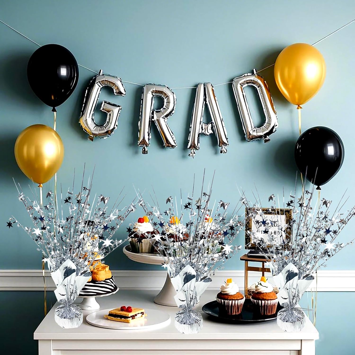 12 Pack Metallic Foil Spray Centerpiece Star Table Decoration Burst Table Centerpieces for Birthday Wedding Anniversary Graduation Holiday Party Supplies Decor, Silver