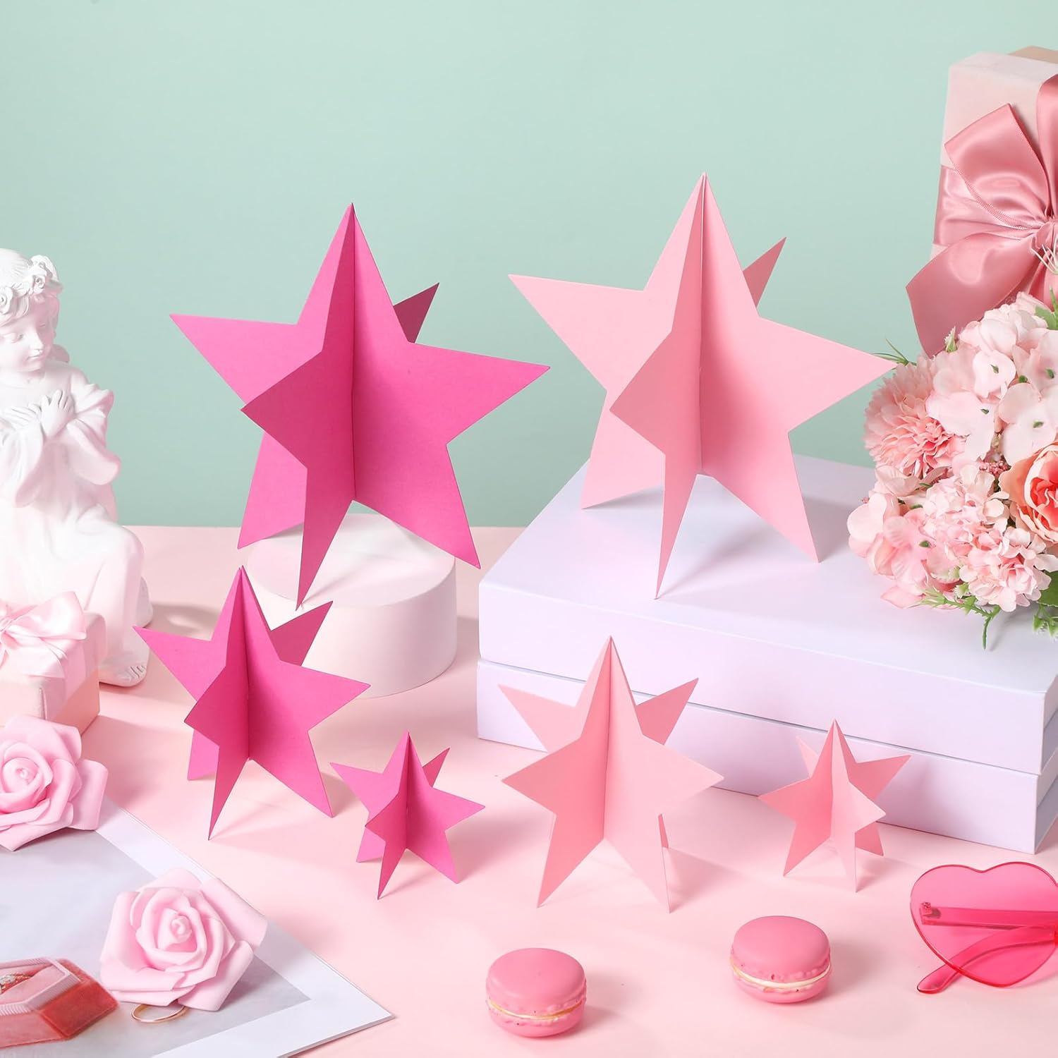 - Material and Stylish Colors: dive into the world of fun with our star decorations, masterfully crafted with 300g cardboard material for durability; Our star centerpieces come in vibrant hues of glitter pink that set the stage for an unforgettable party atmosphere