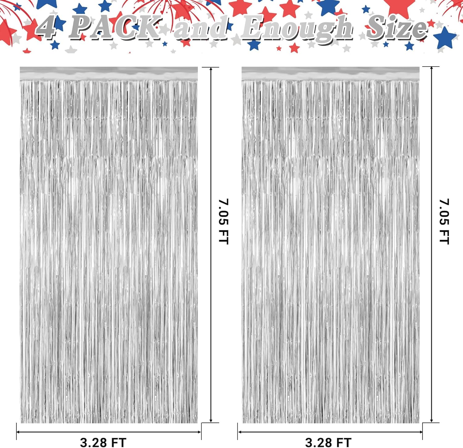 - Package Includes: The set contains 4 pcs silver fringe backdrop, each measuring 3.28 x 7.05 feet. These oversized backdrop curtains can be easily trimmed to any desired length to fit your space.