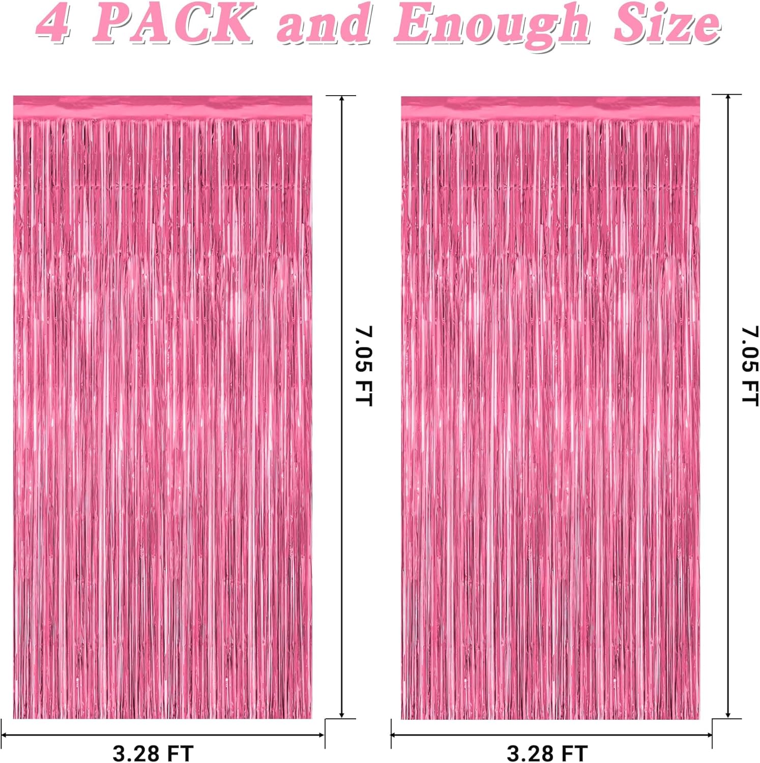 - Package Contents: The package includes 4 pcs pink fringe backdrop, each with dimensions of 3.28 FT x 7.05 FT. These pink decorations for party can be trimmed to fit any specific area.