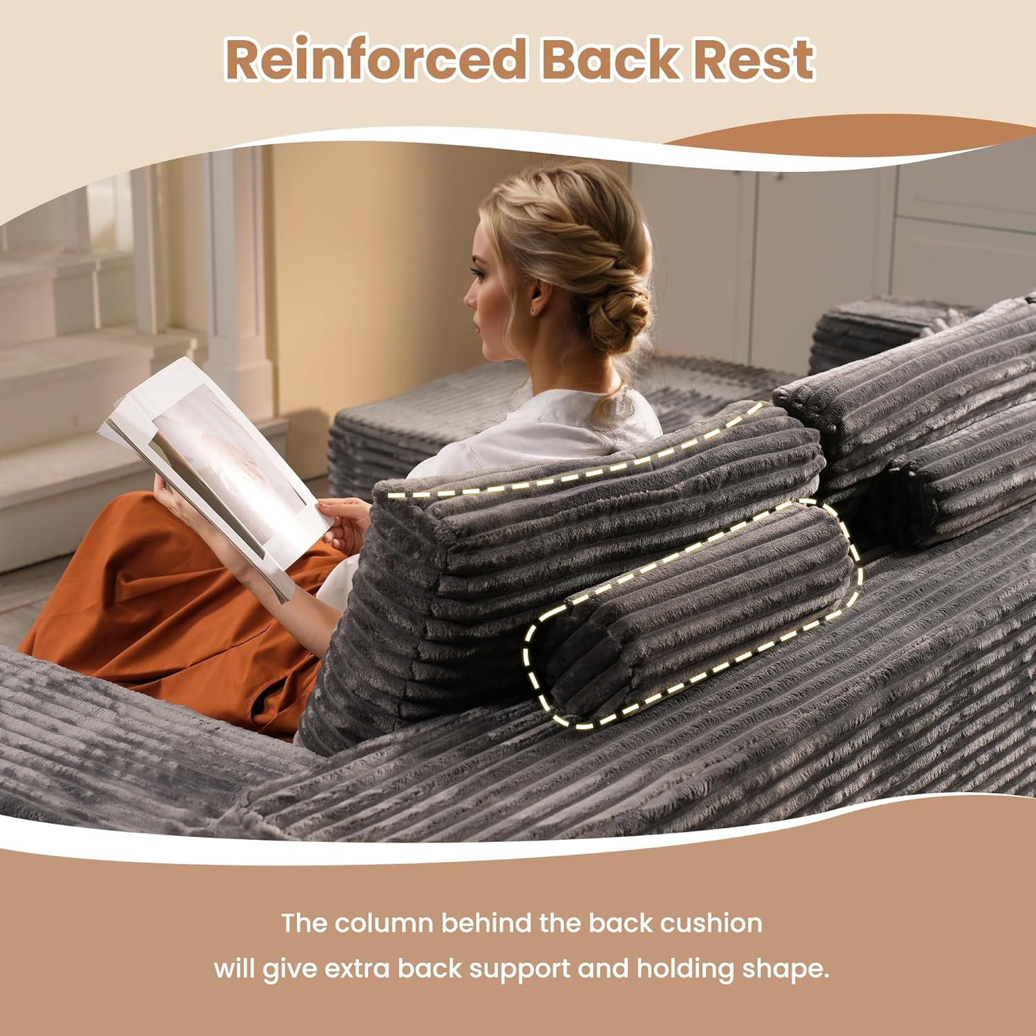 HOOOWOOO Cloud Sectional Couches for Living Room,Modular Sectional Sofa No Assembly,136X108 Inch Plush Corduroy Large U Shaped Floor Couch Set with Deep Seat Ottoman(Gray)